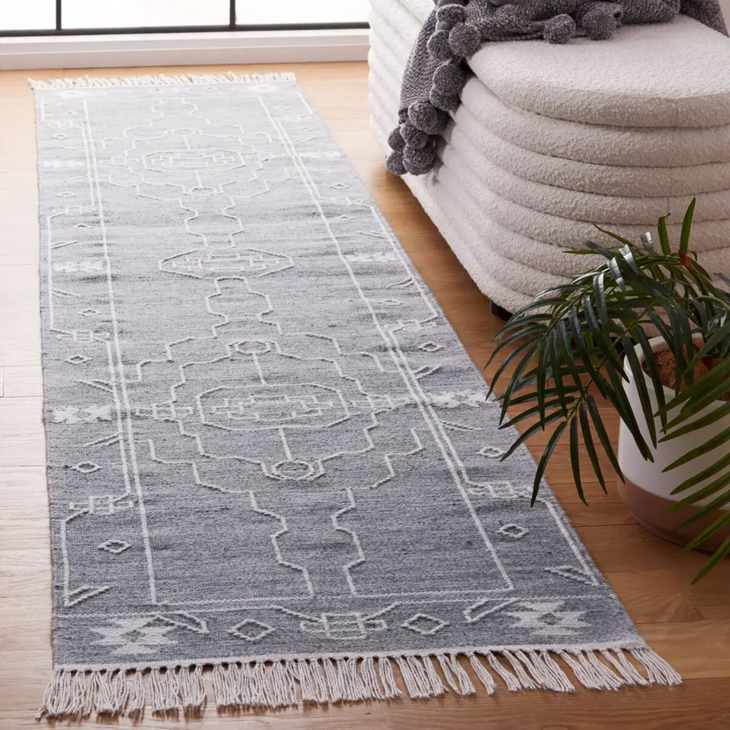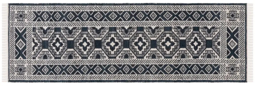 Step into a world where traditional patterns meet modern design with our exquisite 3' x 5' small rectangle area rug. Crafted with care in India, this piece exhibits the timeless charm of black and ivory colors, presented in a distinctive and harmonious geometric pattern that seamlessly blends into any d?cor. This flat-weave rug boasts a low-profile 1/8" height, making it an ideal choice for high-traffic areas, promoting ease under doors and reducing trip hazards. Constructed from durable polypropylene, the rug promises ease of maintenance and long-lasting resilience against the everyday wear and tear of busy homes. Celebrate the art of Indian craftsmanship and bring a touch of sophistication to your space with this stunning rug. The intricate pattern offers a visual feast with its symmetry and culturally-inspired motifs, making it a focal point in any room. Whether you are accentuating your living room, grounding your office space, or bringing warmth to your bedroom, this area rug is not just a surface to walk upon?it's a testament to artisan skill and a statement piece that speaks volumes of your fine taste in home furnishings.