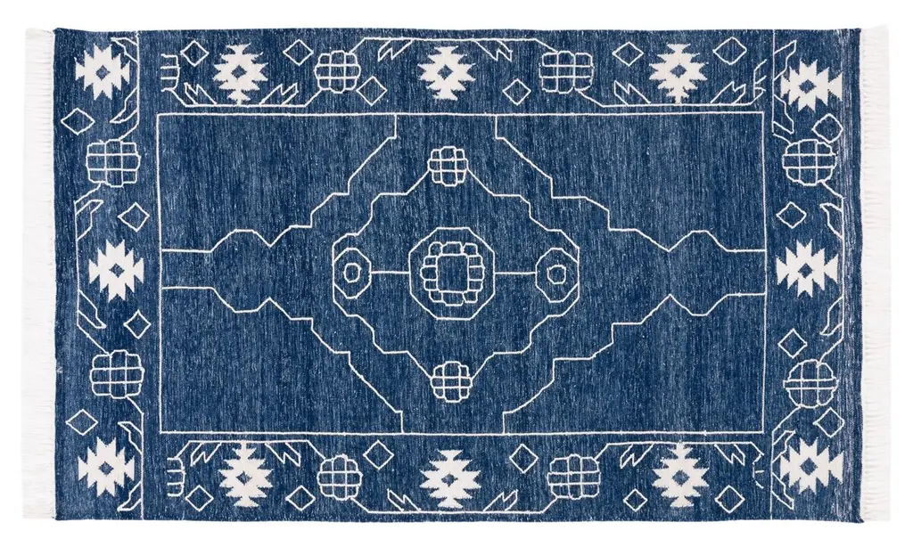 Step into a world where traditional patterns meet modern design with our exquisite 3' x 5' small rectangle area rug. Crafted with care in India, this piece exhibits the timeless charm of black and ivory colors, presented in a distinctive and harmonious geometric pattern that seamlessly blends into any d?cor. This flat-weave rug boasts a low-profile 1/8" height, making it an ideal choice for high-traffic areas, promoting ease under doors and reducing trip hazards. Constructed from durable polypropylene, the rug promises ease of maintenance and long-lasting resilience against the everyday wear and tear of busy homes. Celebrate the art of Indian craftsmanship and bring a touch of sophistication to your space with this stunning rug. The intricate pattern offers a visual feast with its symmetry and culturally-inspired motifs, making it a focal point in any room. Whether you are accentuating your living room, grounding your office space, or bringing warmth to your bedroom, this area rug is not just a surface to walk upon?it's a testament to artisan skill and a statement piece that speaks volumes of your fine taste in home furnishings.