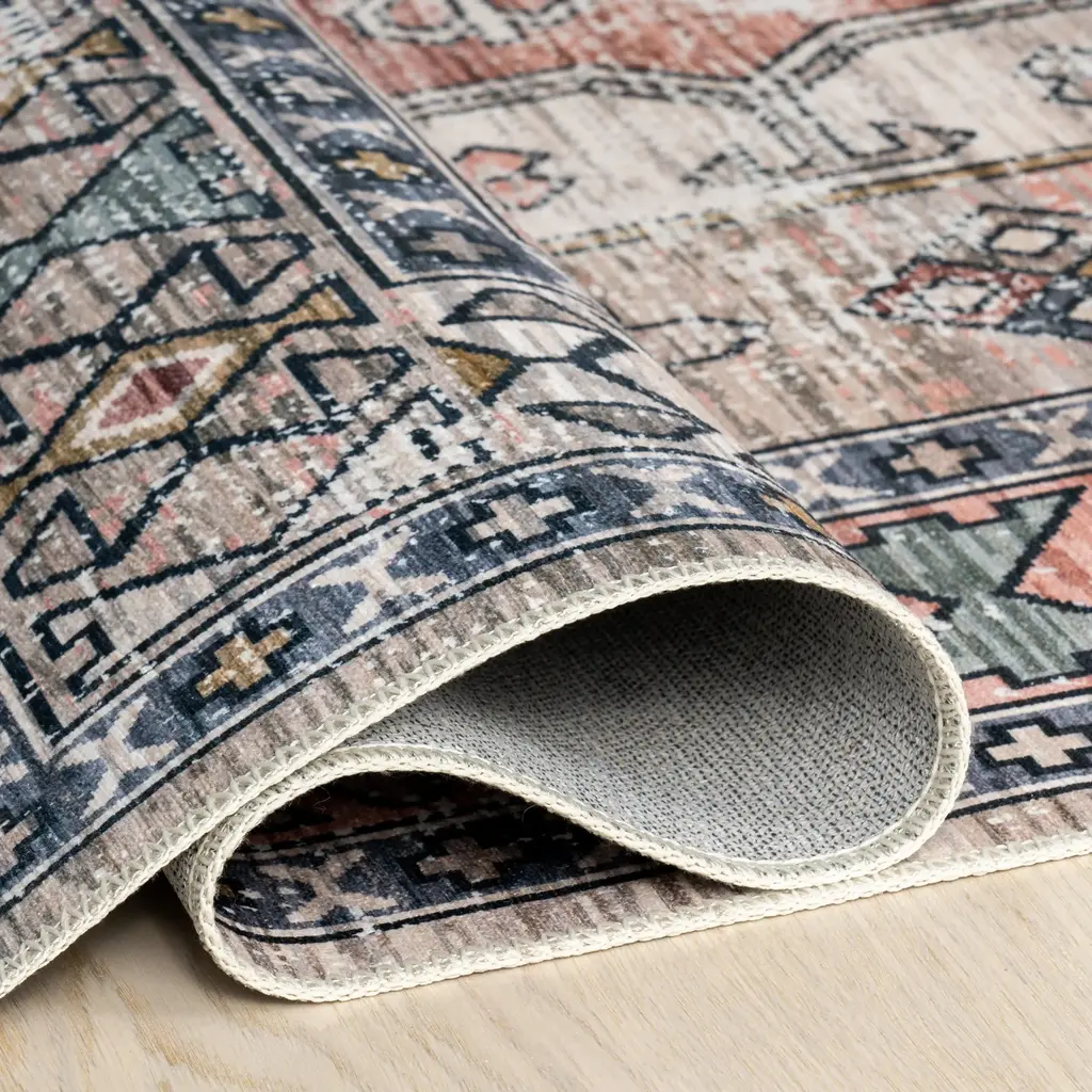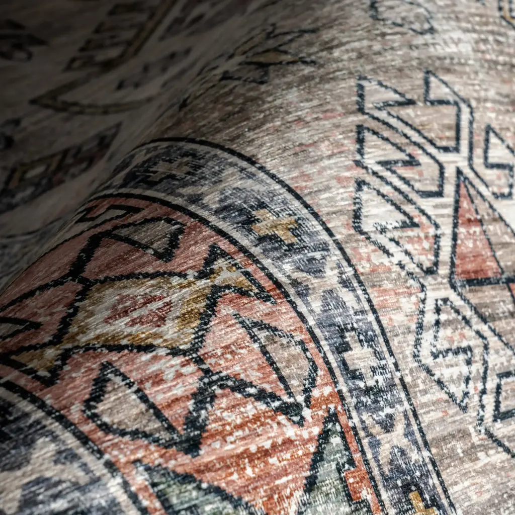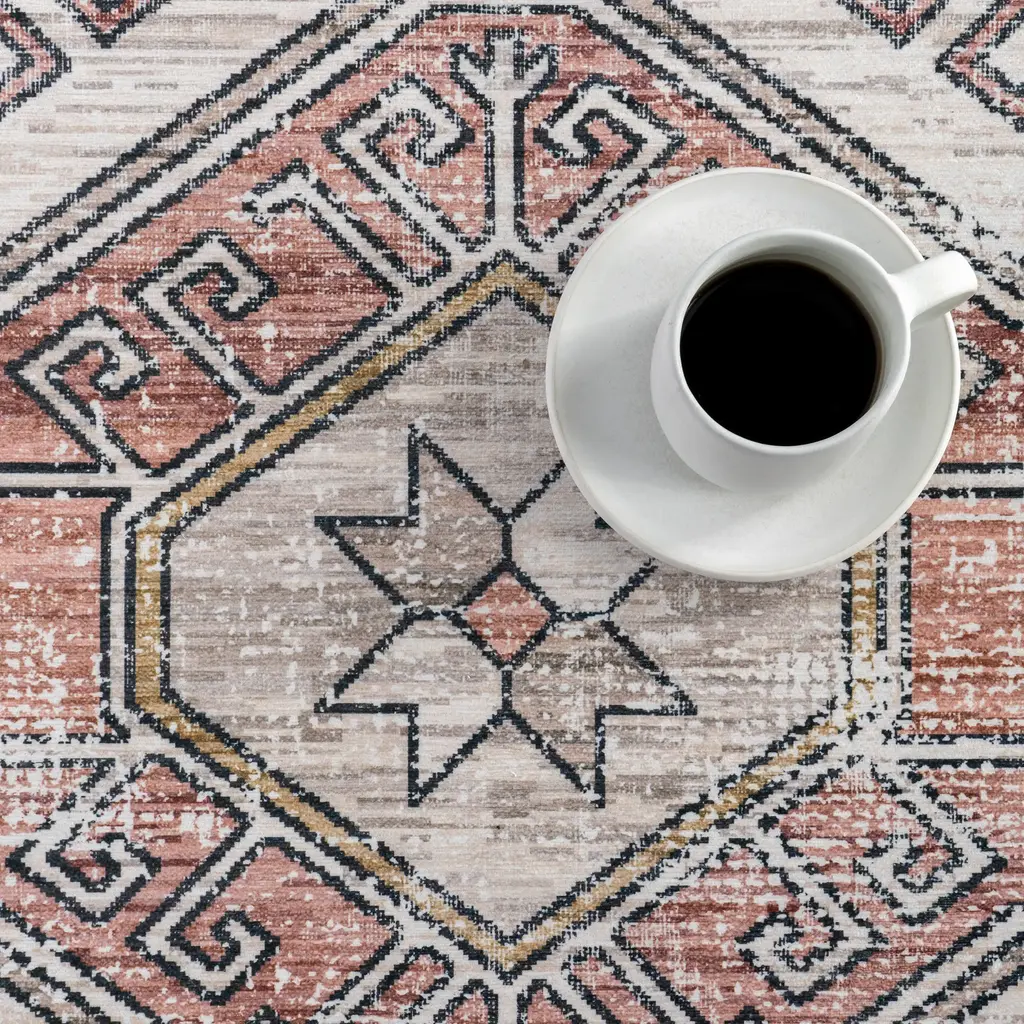 Nordic Emblems Spill Proof Washable Rug | Peach - 5' X 8'