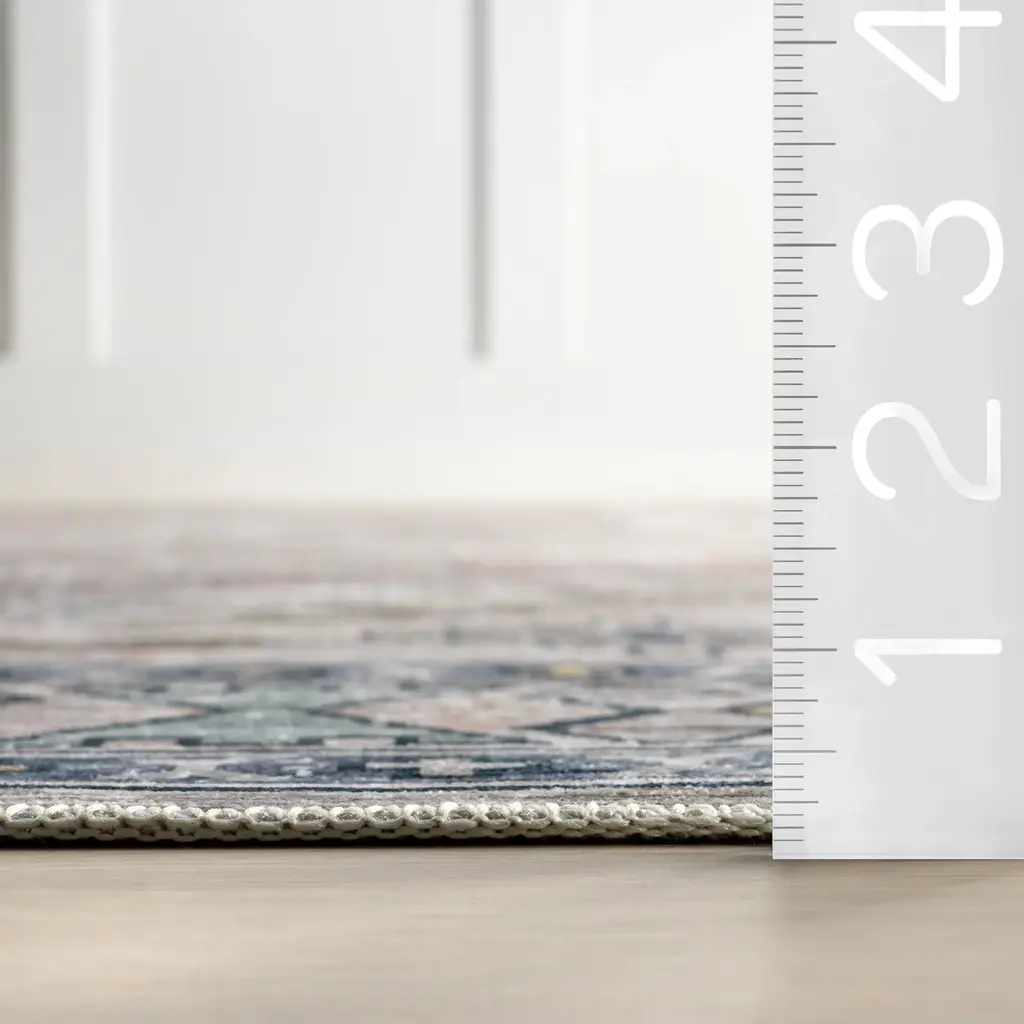 Nordic Emblems Spill Proof Washable Rug | Peach - 6' X 6'