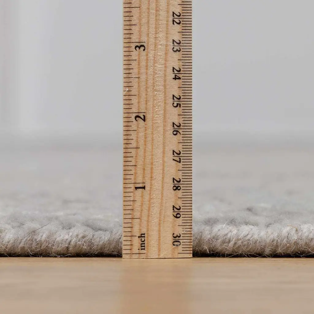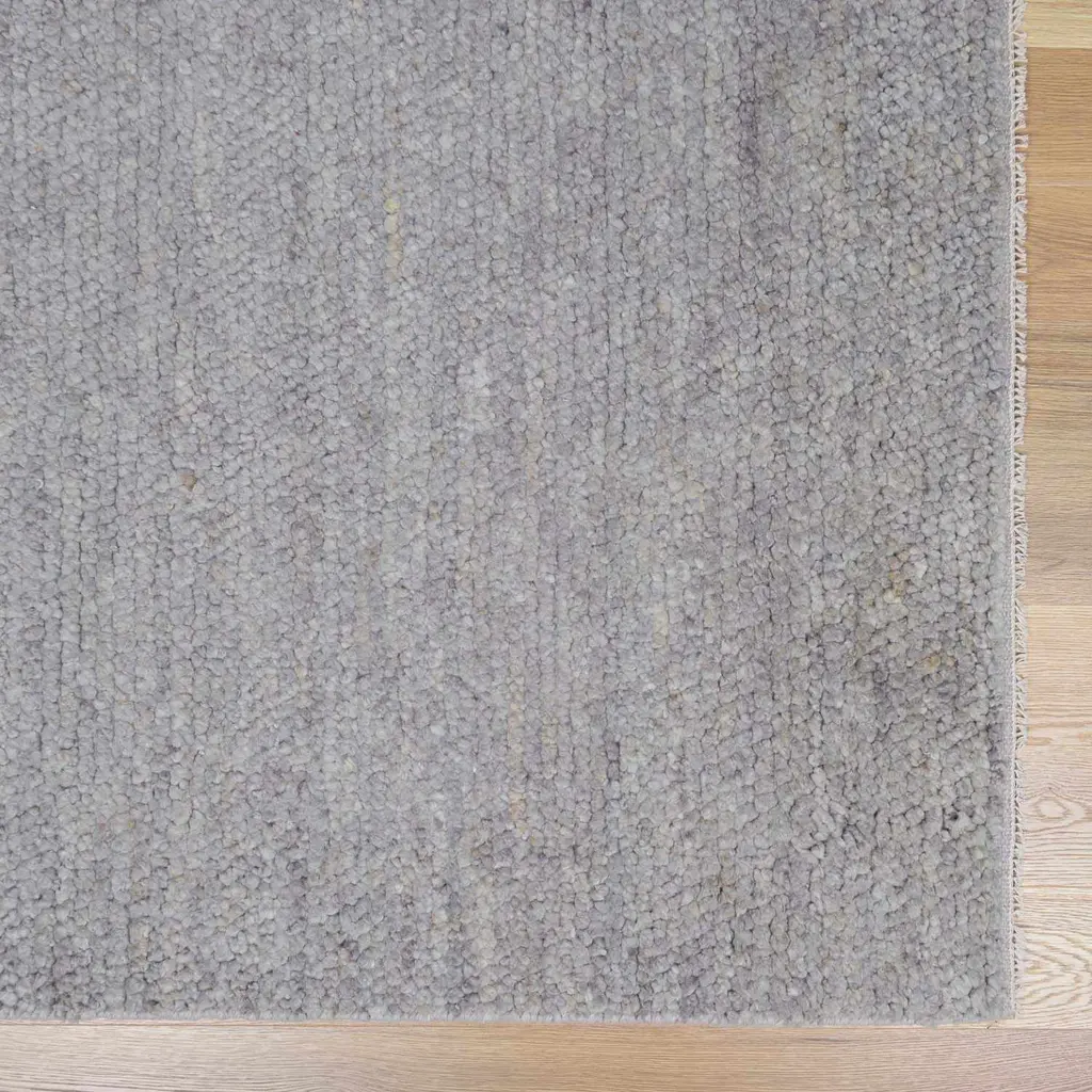 Collection: Norio Colors: Medium Gray Construction: Hand Knotted Material: 100% Wool Pile: Medium Pile Pile Height: 0.3" Styles: Contemporary Made In: India Thickness: 0.5" Price Range: $$$$$ (Premium)