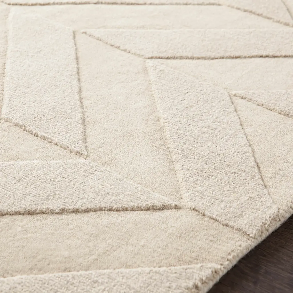 Collection: Normalville Colors: Beige Construction: Hand Loomed Material: 100% Wool Pile: Medium Pile Pile Height: 0.39" Styles: Contemporary Backing: Canvas Made In: India Thickness: 0.55" Price Range: $$$$$ (Most Affordable)