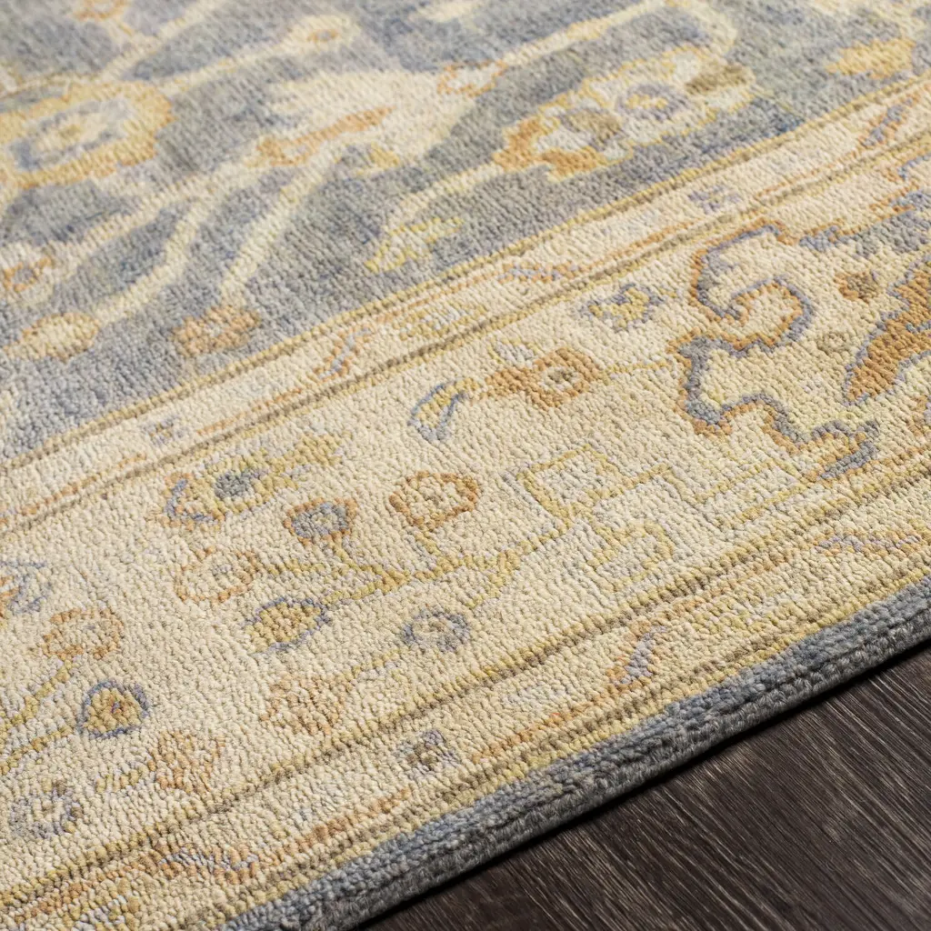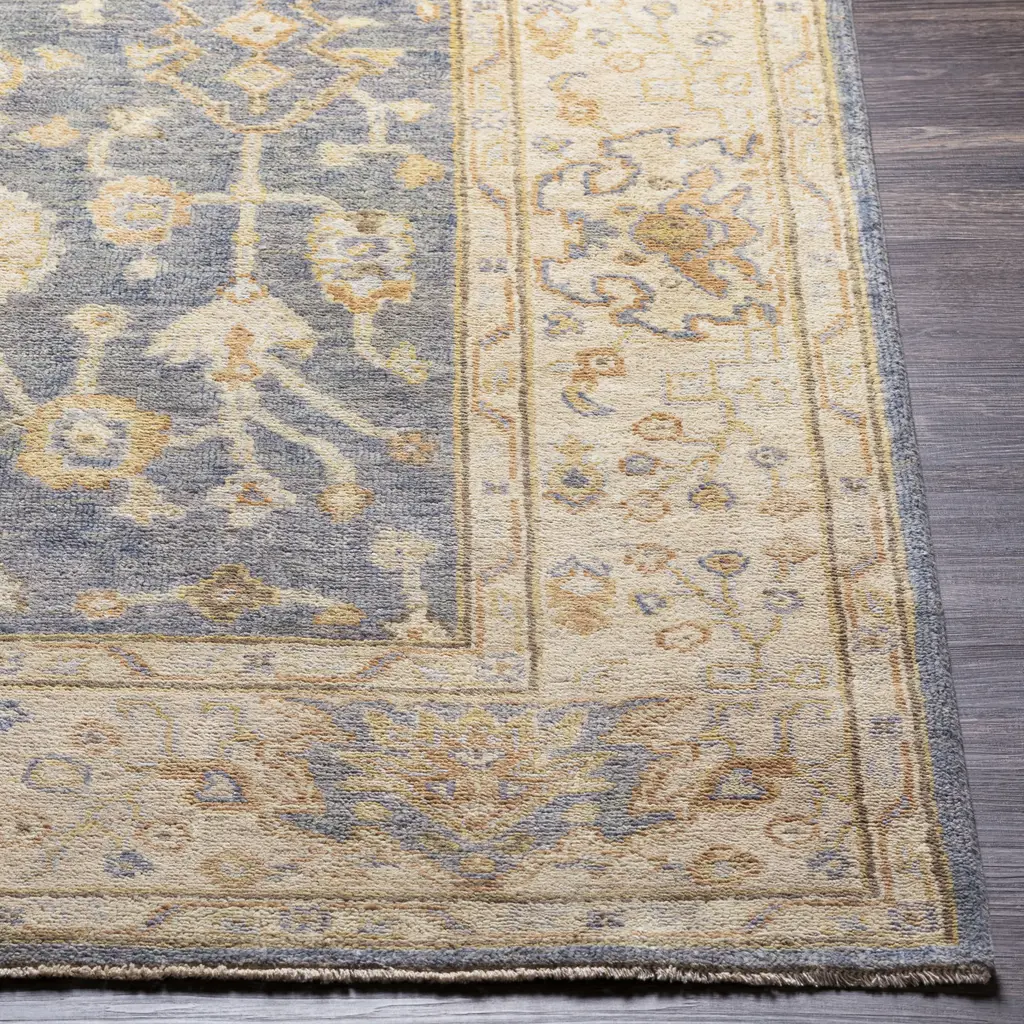 The Normandy Collection showcases traditional inspired designs that exemplify timeless styles of elegance, comfort, and sophistication. With their hand knotted construction, these rugs provide a durability that can not be found in other handmade constructions, and boasts the ability to be thoroughly cleaned as it contains no chemicals that react to water, such as glue. Made with Wool in India, and has Low Pile. Spot Clean Only, One Year Limited Warranty.