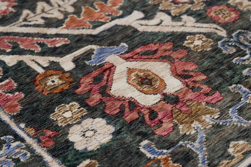 Add an extra stylish touch to your space with our Normandy rug. Available in two different colorways, so you can find the right piece for your space. One colorway features muted blues mixed with warm neutrals over an ivory background. The other rug option showcases a mix of bolder blues and reds over a green background. Please select color and size before adding to cart.