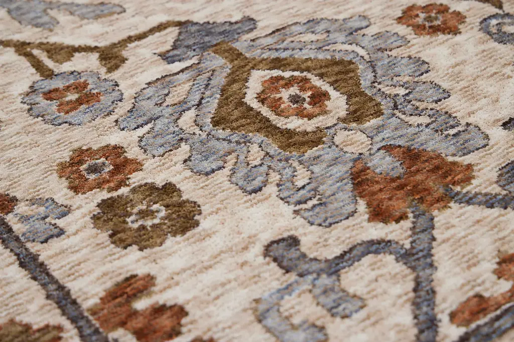 Add an extra stylish touch to your space with our Normandy rug. Available in two different colorways, so you can find the right piece for your space. One colorway features muted blues mixed with warm neutrals over an ivory background. The other rug option showcases a mix of bolder blues and reds over a green background. Please select color and size before adding to cart.