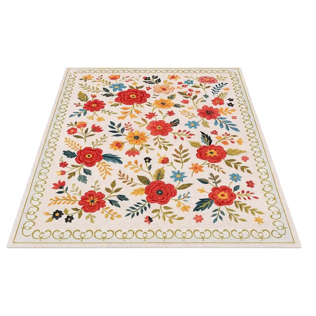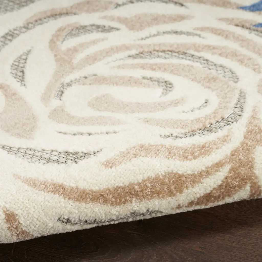 Spring is in full bloom year-round when you place this outdoor rug on your patio, porch, or indoor spaces! The oversized blue and grey floral pattern is enhanced with a subtly raised cut pile that adds a touch of texture and dimension. Whether your taste is in neutrals or more colorful rugs, this bold design is sure to be a conversation starter. Made from premium stain resistant fibers for durability and ease of cleaning. Hand washable outdoors: rinse with a hose and air dry.EYE-CATCHING PATTERN: This floral outdoor rug is flatwoven with a subtly raised cut pile for a distinctive look and soft texture.VERSATILE DESIGN: The durable polypropylene construction makes this low pile rug ideal for both outdoor and high-traffic indoor areas.CLEANS EASILY: Whether you have cats, dogs, young kids, or all of the above, you�ll love this easy clean rug. Simply vacuum away loose dirt or hose-rinse & air dry any spills.LOW PROFILE: The short, 0.25-inch rug height is great for placement near your entryway or underneath furniture.PLEASE NOTE: We strongly recommend using a rug pad to keep your rug in place when using indoors.OEKO-TEX Certified