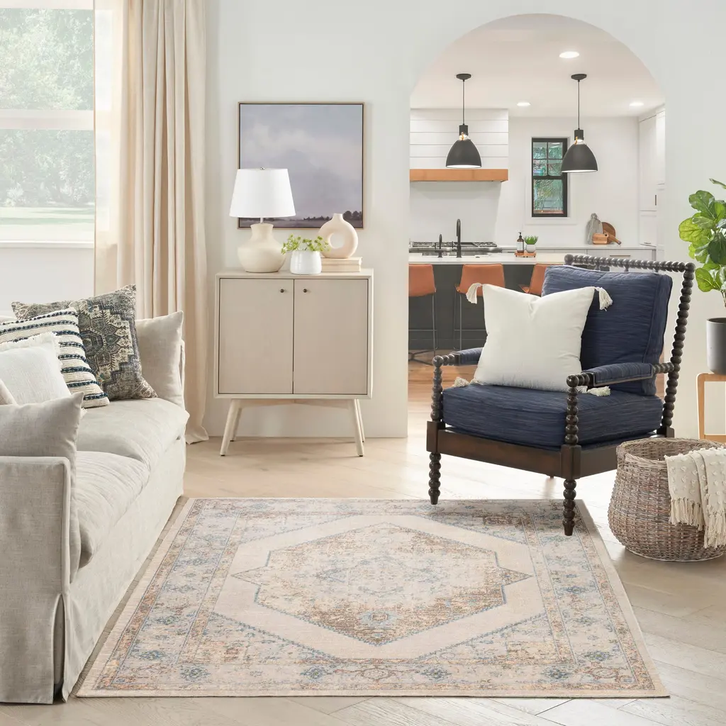 Bring a storied look to your home with this Persian rug from the Astra Machine Washable Collection The classic center medallion design is finished with a soft fade, which is enhanced with an eye-catching sheen that reflects or captures your room's lighting to create two distinctive looks in one. This vintage-inspired rug is washable for fuss-free cleaning, making it an ideal addition to busy households with pets and kids.