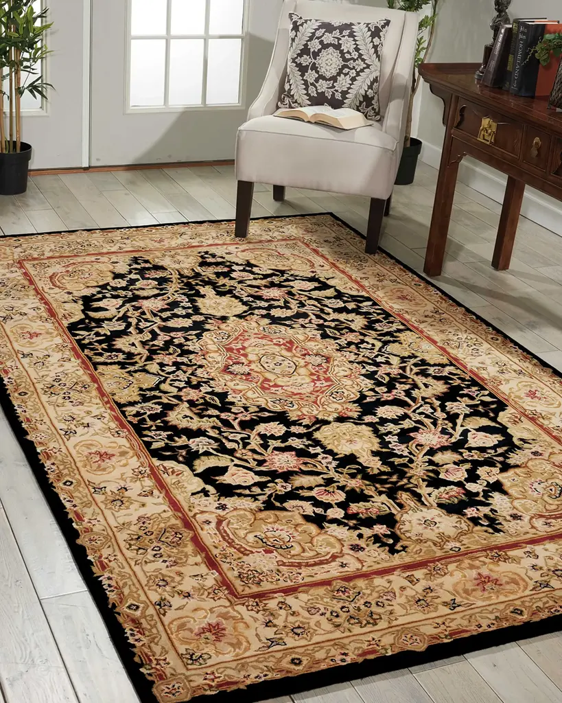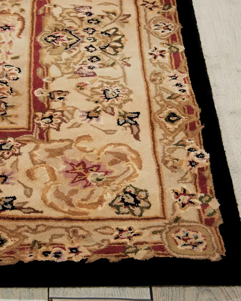 Handcrafted, traditional rug. New Zealand wool/pure silk. Hand-washed, -finished, and -tufted. All sizes approximate. We recommend use of a rug pad (not included). Imported. About Nourison: Nourison is a leading global floor-covering company that produces extensive collections of area rugs. Founded in 1980 by the Peykar brothers, Nourison has grown from a small family business to a world-renowned company with headquarters in Saddle Brook, New Jersey, and a presence in Europe, Asia, and the Americas. The company is known for its innovative designs, quality craftsmanship, and commitment to sustainability. Nourison continues to be a trendsetter in the industry, offering luxury rugs to high-end clientele.