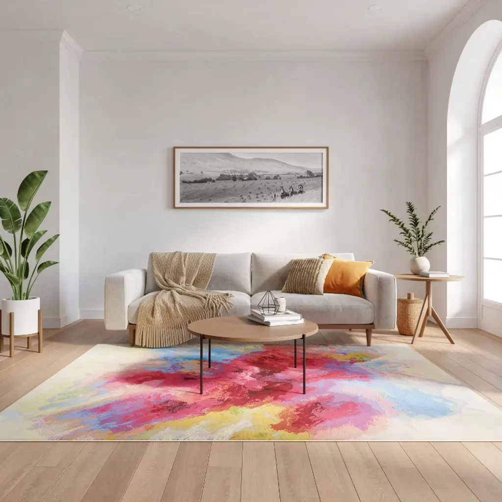 Add a painterly touch to your space with this abstract indoor-outdoor rug from the Color Splash collection. Splashes of overlapping color, woven in vivid detail, create a stunning focal point for modern spaces. This flatweave rug is made from a blend of polypropylene and polyester for easy care. Fuss-free care: simply rinse with a hose and air dry.