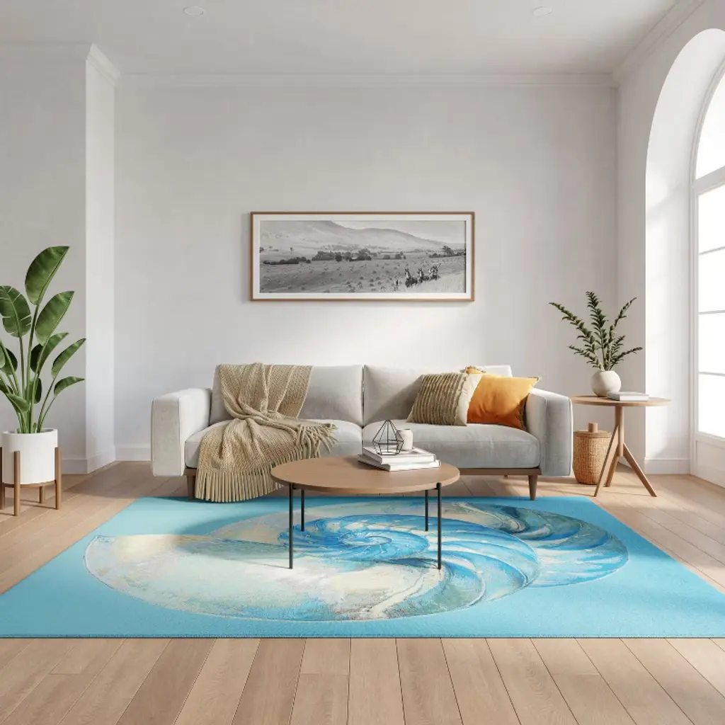 Dive into a sea of serenity with this coastal indoor-outdoor rug from the Color Splash collection. This flatweave rug showcases a nautilus seashell in delicate hues that channel the look of a classic, nautical art piece. Made from a blend of polypropylene and polyester for easy care. Fuss-free care: simply rinse with a hose and air dry.