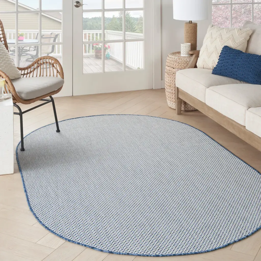 Nourison Courtyard 5' X 8' Oval Ivory Blue Modern Area Rug