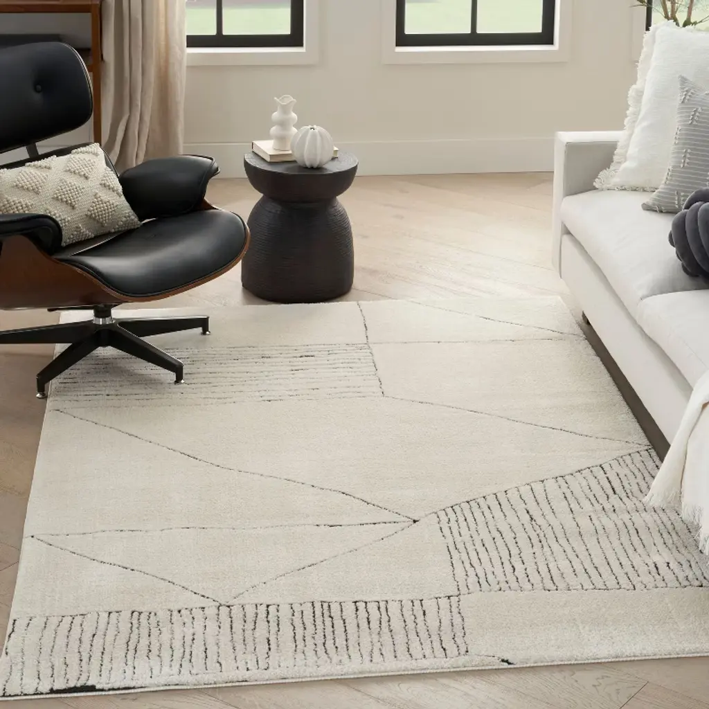 Nourison Cozy Modern Abstract Scandinavian Indoor Area Rug Ivory Black 3'11"x5'11"