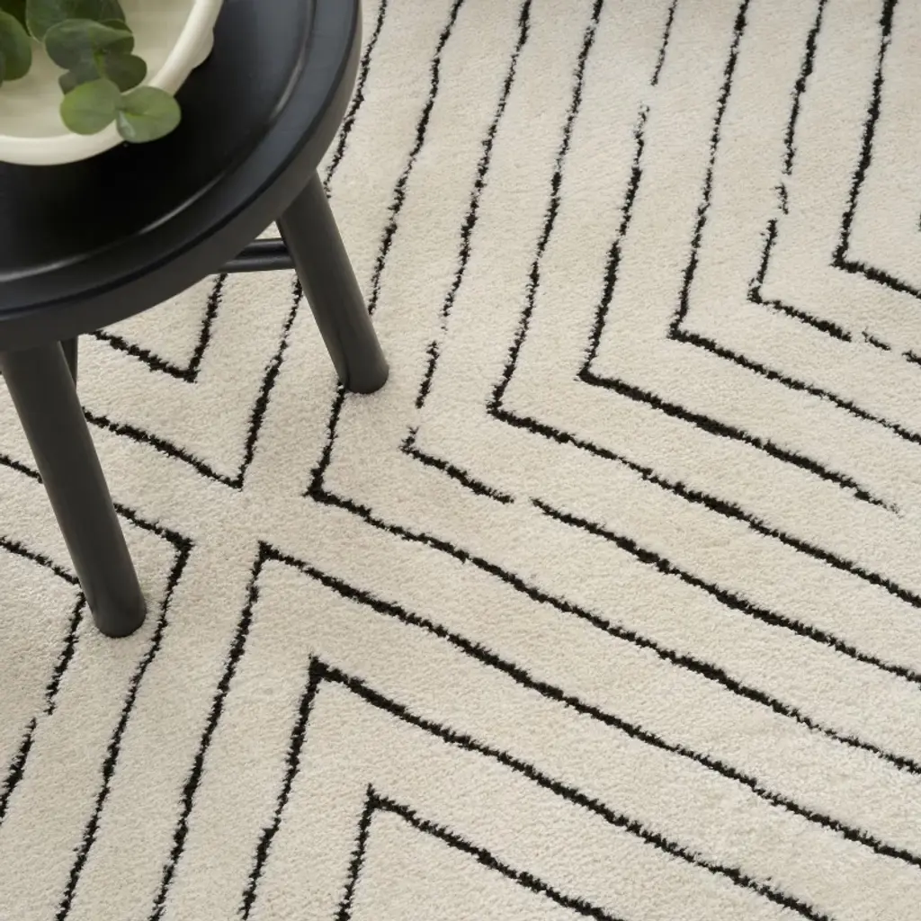 Add an instant layer of warmth to your home with this black and white rug from the Cozy Modern Collection. The simple linear pattern effortlessly blends form and function thanks to a cozy polyester pile that’s low maintenance and easy to clean. Made in a medium-thick construction ideal for placement in your living room or bedroom.