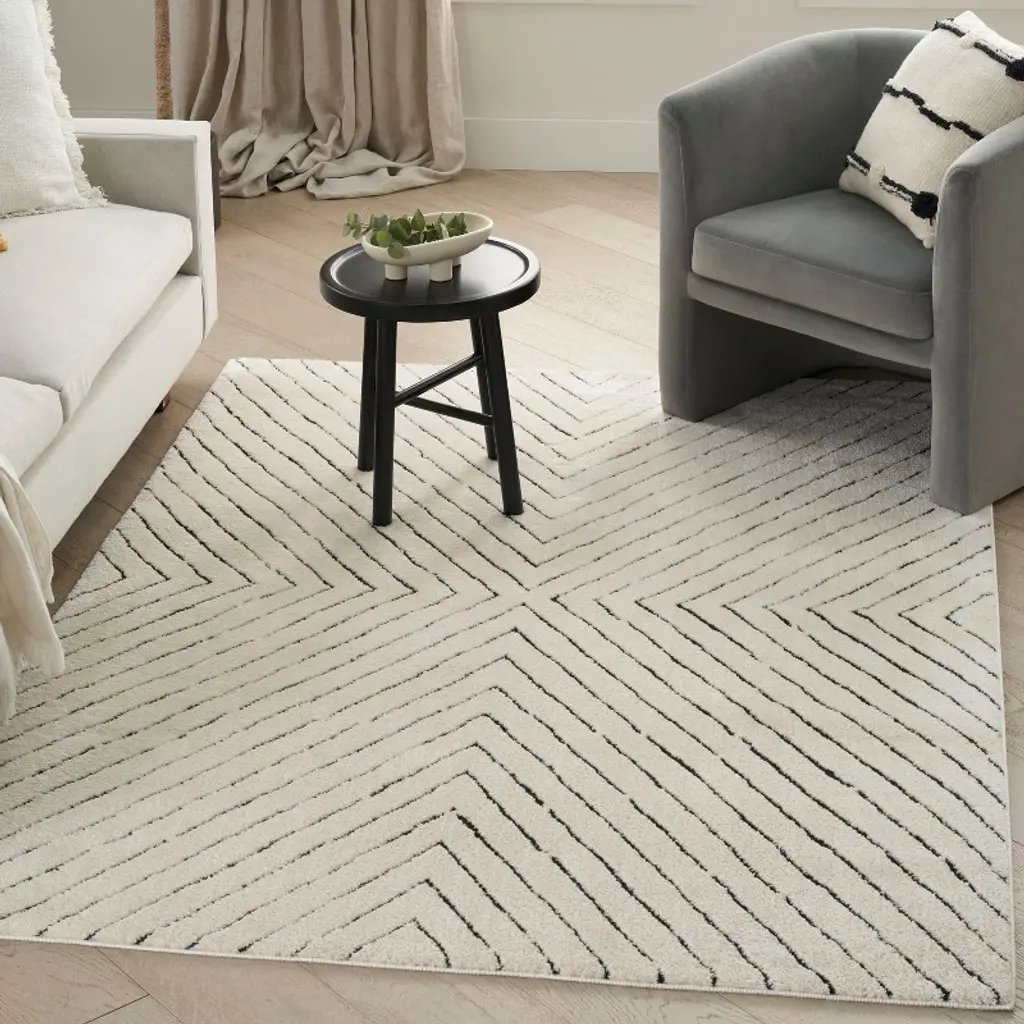 Nourison Cozy Modern Scandinavian Indoor Area Rug Ivory Black 5'3"x7'