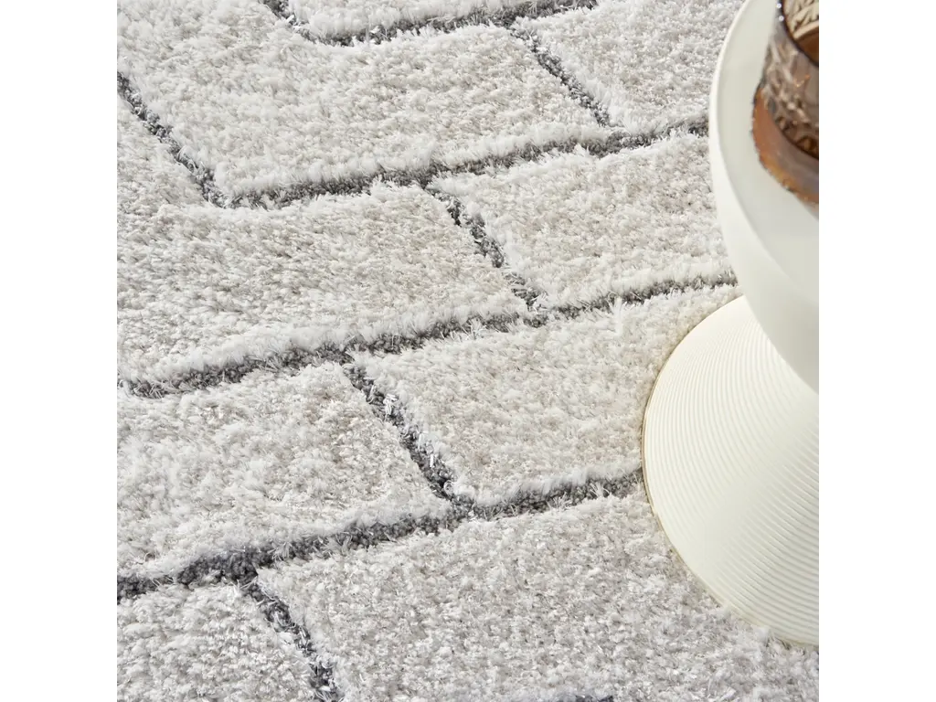 With its cobbled chevron design, this contemporary rug from the Dreamy Shag Collection brings a unique edge to your decor. It features a plush 1.25" pile that feels so soft, you may find yourself spending more time seated on the rug. Dreamy Shag is machine made of polyester in a combination of neutral ivory and gray hues that fit seamlessly with modern styles.