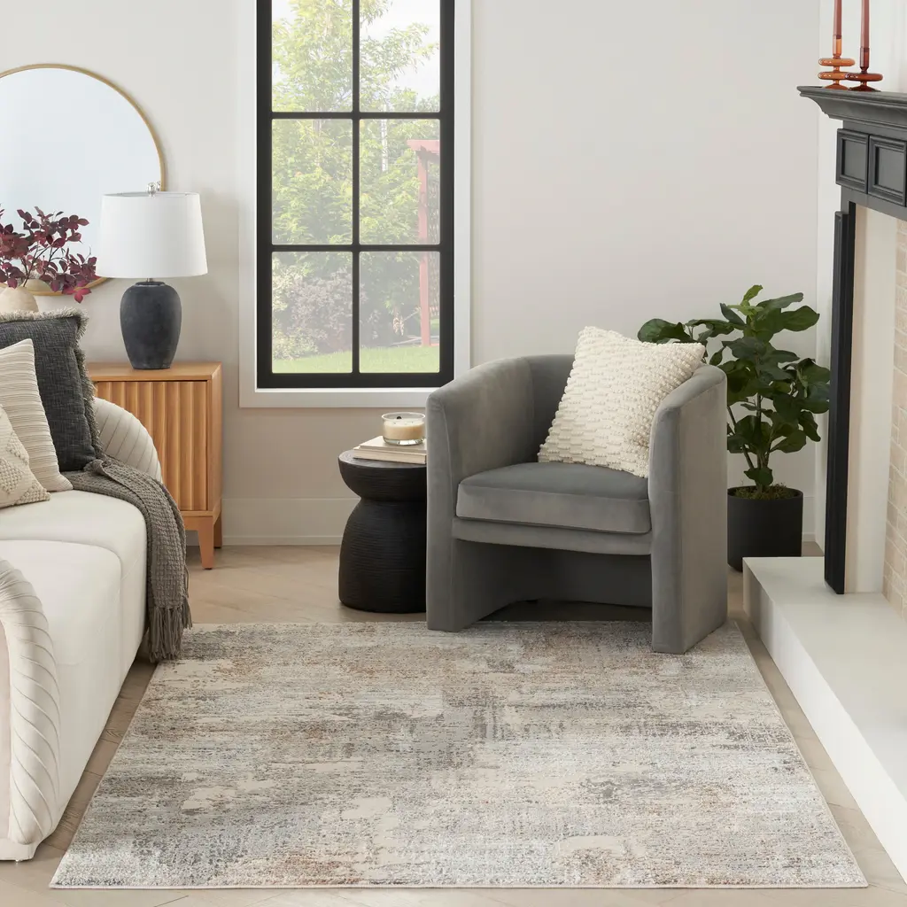 Add a refreshing burst of modern style to your home with this abstract rug from the Eco-Friendly Collection. Splashes of beige, brown, and multi-tonal grey add a distinctively urban look that beautifully complements neutral décor. Woven from recycled polyester yarns, this softly textured rug is ultra-durable for fuss-free cleaning and lasting style.