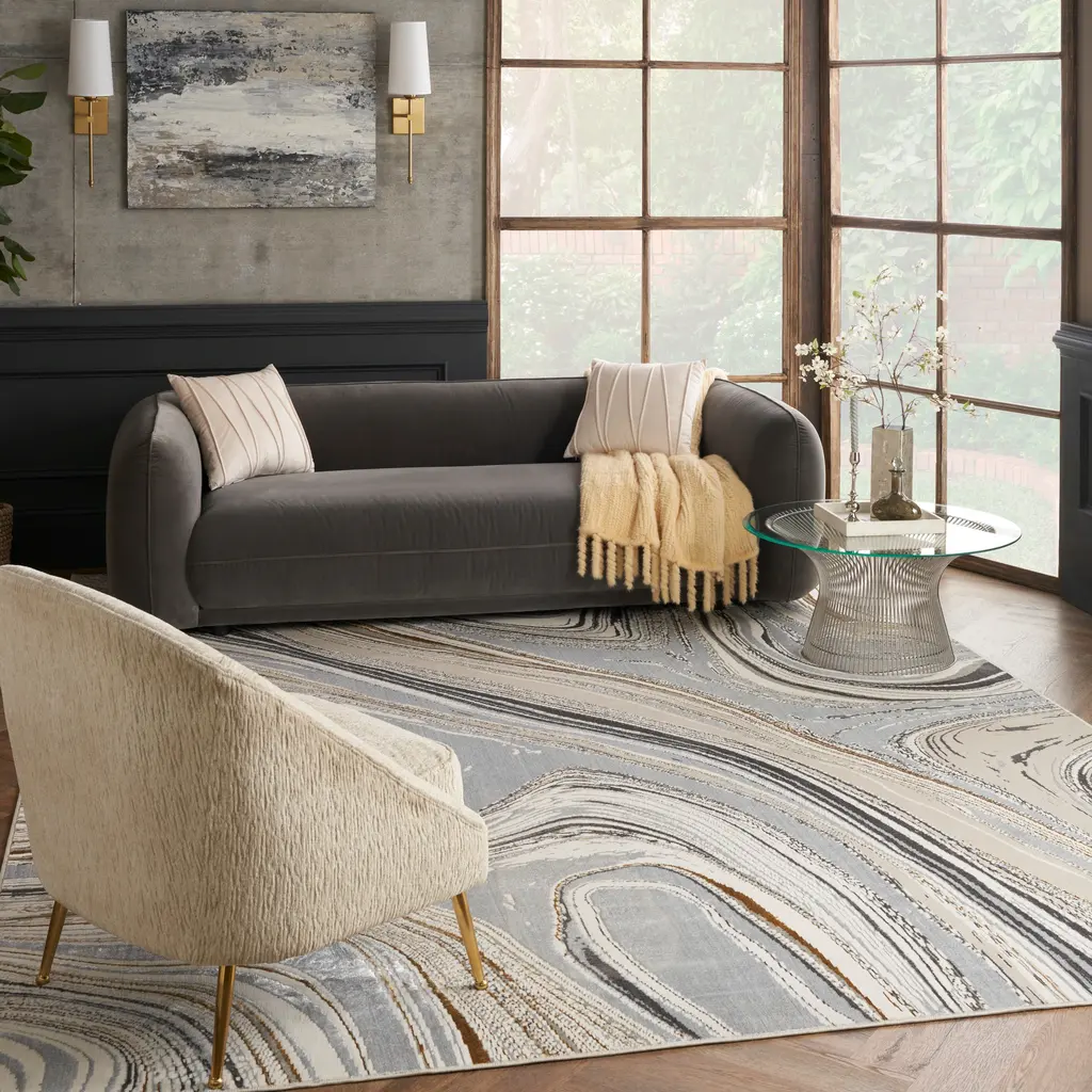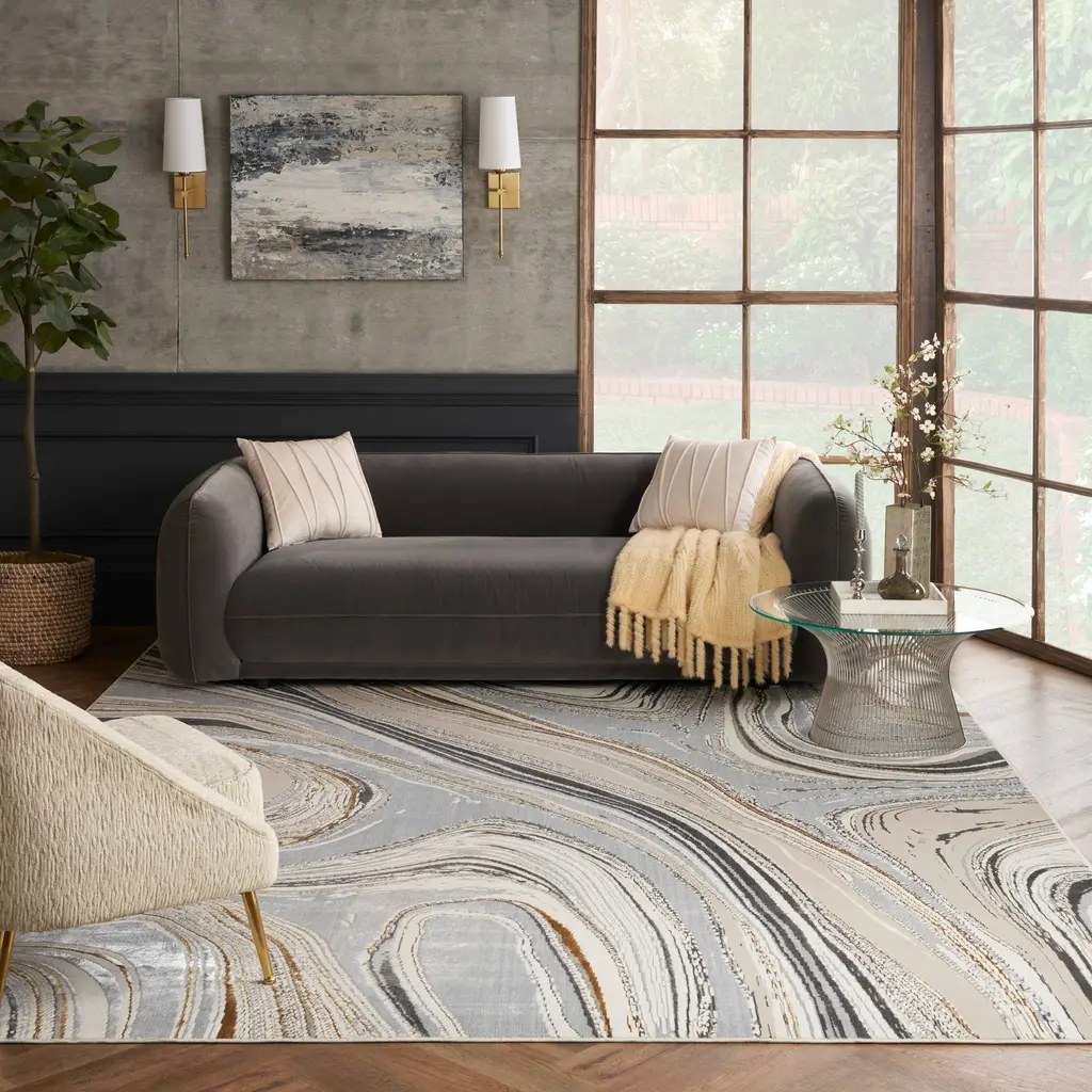 Nourison Glam Indoor Abstract Area Rug - 9' X 12' - Grey/gold - Rectangle
