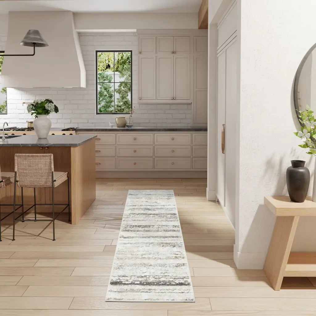 Nourison Glam Modern Distressed Indoor Area Rug Cream Grey 2'3" X 7'6"