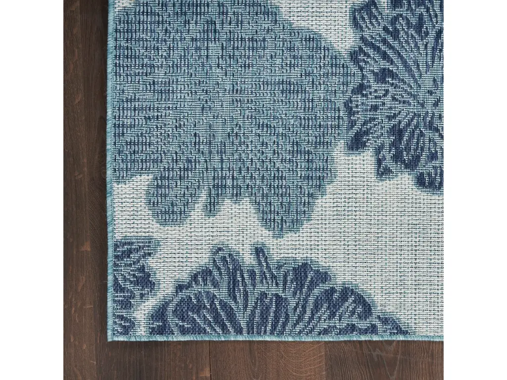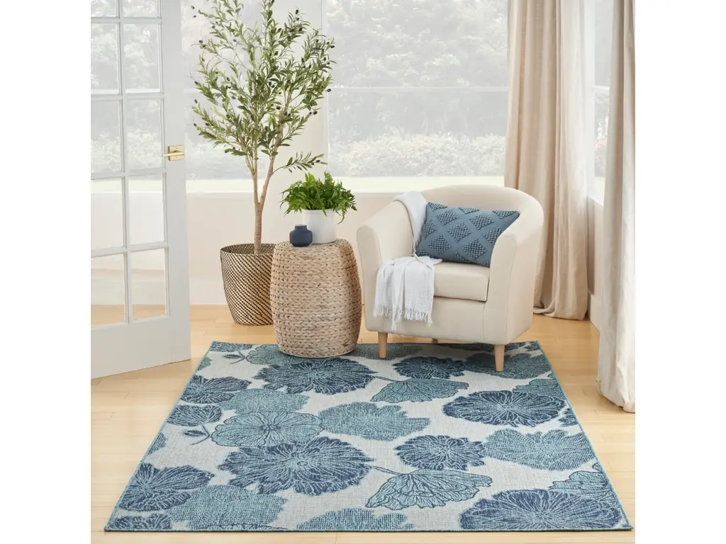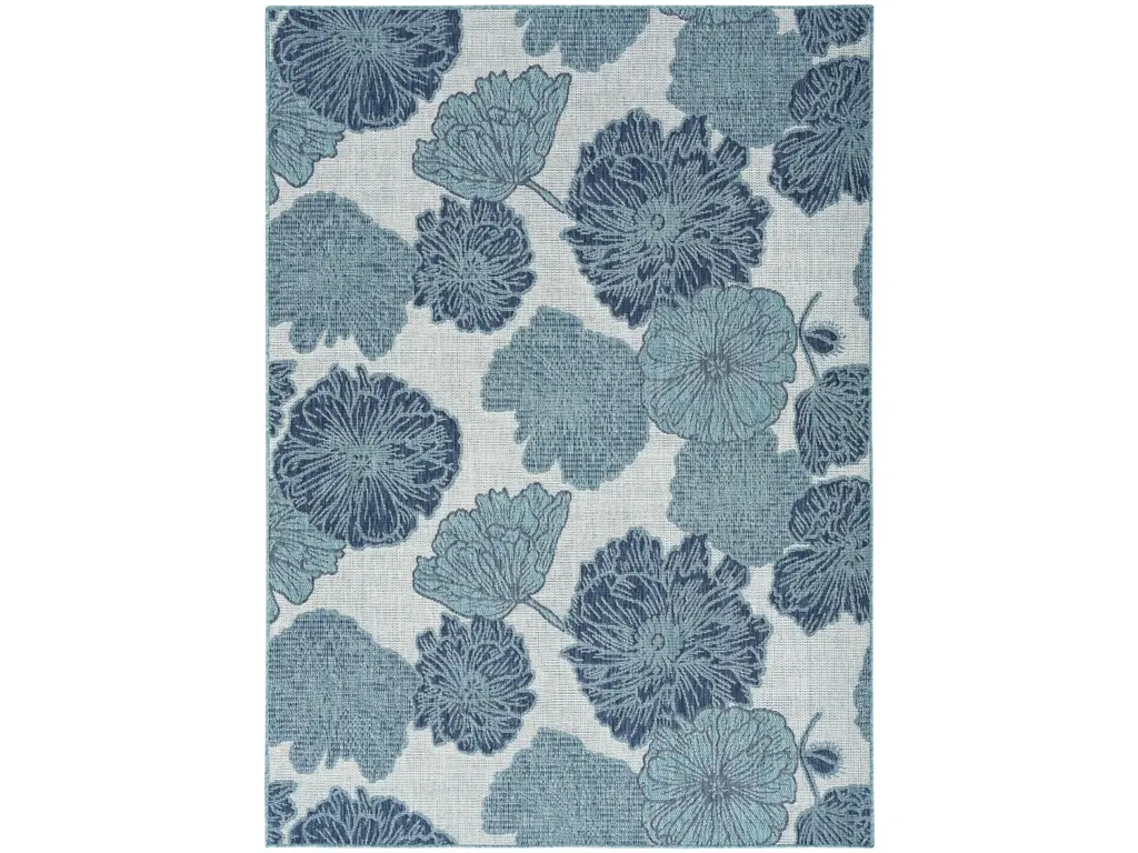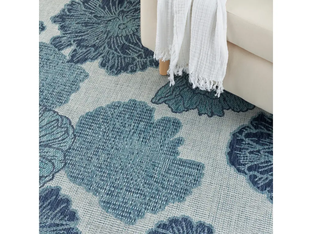 Let Spring bloom all year round with this blue Garden Oasis Collection outdoor rug. Bold blooming flowers adorn its flatwoven surface in a bold color contrast sure to wow friends and family. This versatile floral rug is a stylish, low-maintenance way to refresh your space in an instant. Place it on your patio, porch, balcony, or deck to create cozier outdoor conversation spaces. This rug is also great for use in the busiest rooms inside your house, including the kitchen, living room, and bathroom. Hand washable outdoors: rinse with a hose and air dry.