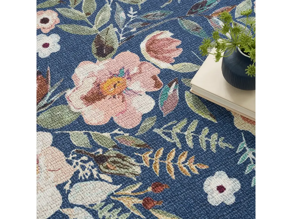 Add vintage charm to your home with this navy blue Modern Washables floral rug. The oversized watercolor-inspired pattern channels a farmhouse vibe, making it perfect for adding warmth to any space. Made from durable materials, this washable rug features a non-slip backing for added safety on hard floors.