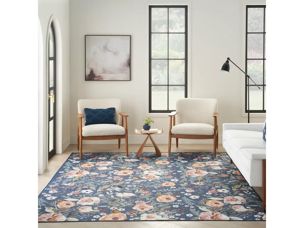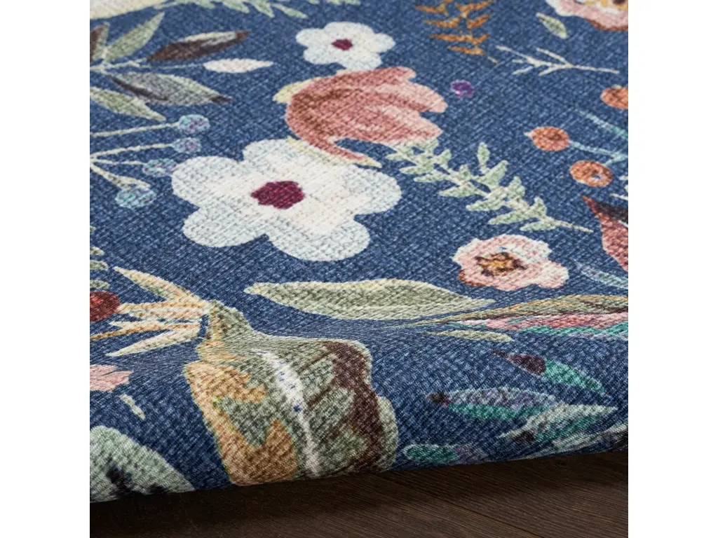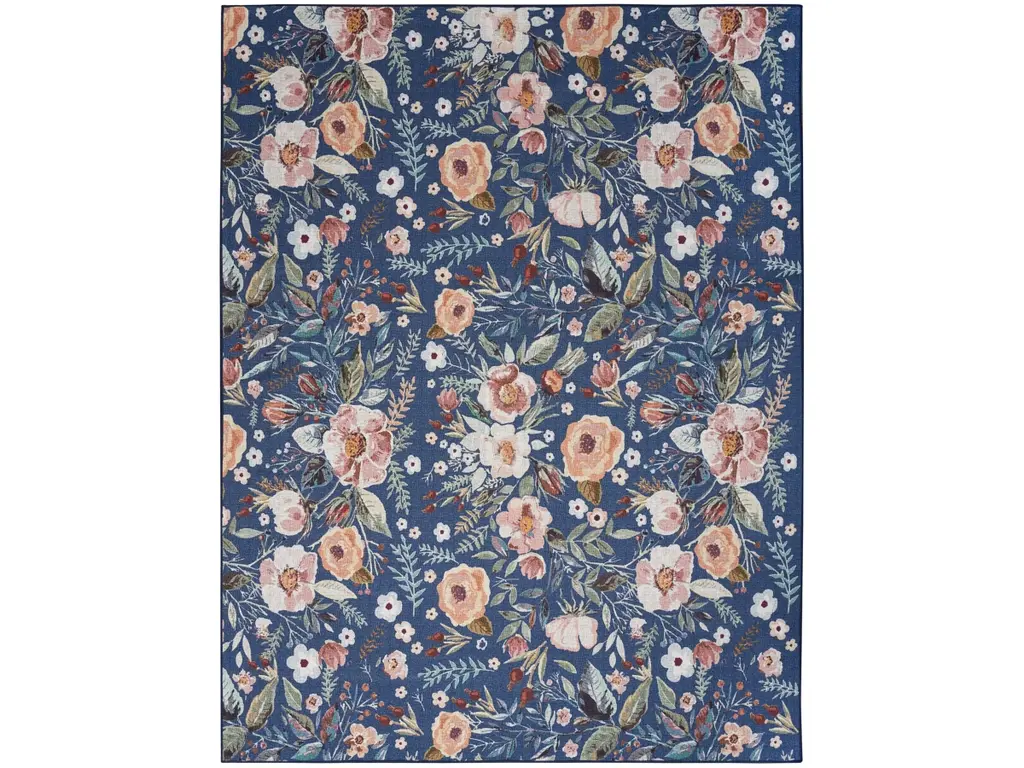 Add vintage charm to your home with this navy blue Modern Washables floral rug. The oversized watercolor-inspired pattern channels a farmhouse vibe, making it perfect for adding warmth to any space. Made from durable materials, this washable rug features a non-slip backing for added safety on hard floors.