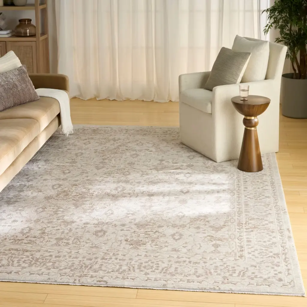 Bring timeless character to your décor with this vintage-style grey rug from the Outlines collection. Featuring a detailed Persian design in a soft neutral palette, it effortlessly enhances traditional, farmhouse, and cottagecore styles. Made from easy-to-clean polyester, this rug is as practical as it is stylish. Finished with fringe edges for a polished look.
