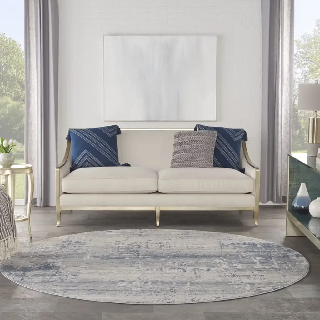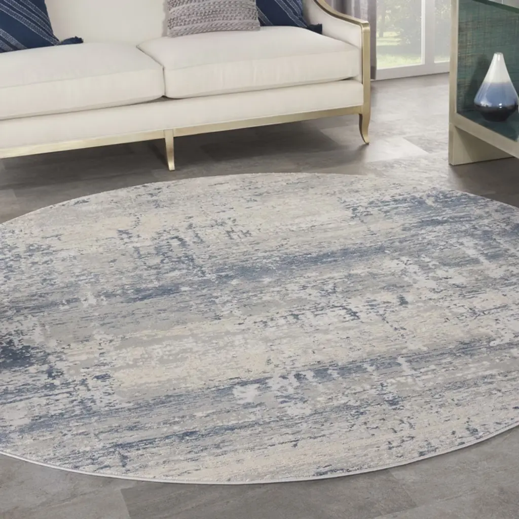 Nourison Rustic Textures Abstract Indoor Area Rug Ivory Blue 7'10" X Round