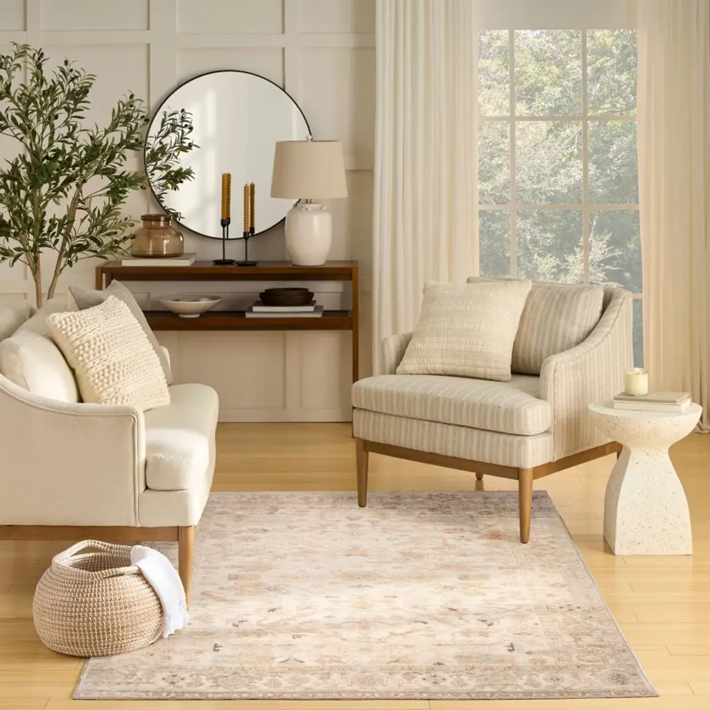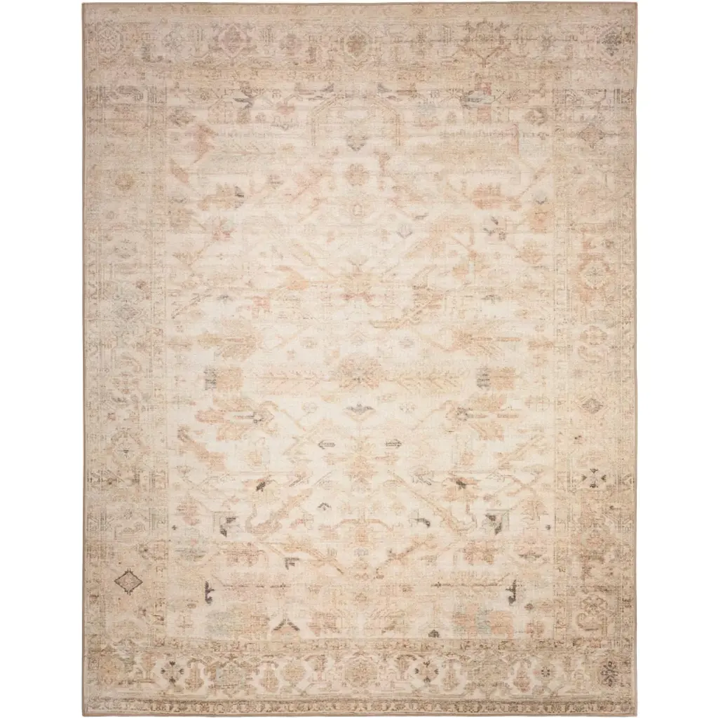 Enhance your space with the subtle, sophisticated appeal of this vintage-inspired beige rug from the Vintage Washables collection. The intricate floral pattern and soft color palette, complemented by an artful fade, is a beautiful addition to traditional, farmhouse, and cottagecore décor. This washable rug is made from polyester with a non-skid back and flatweave construction for easy maintenance.