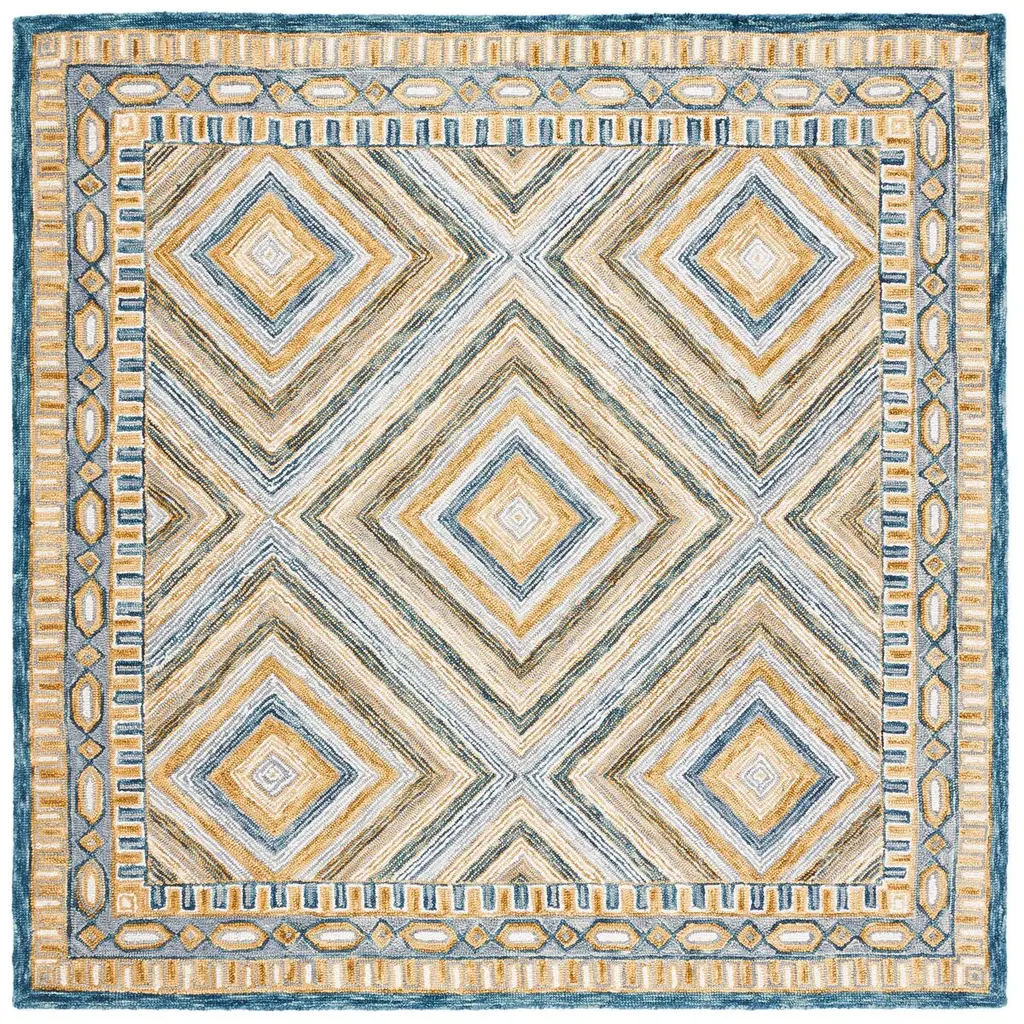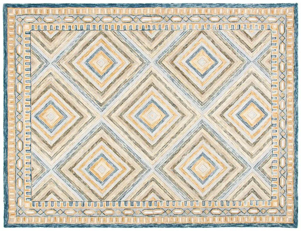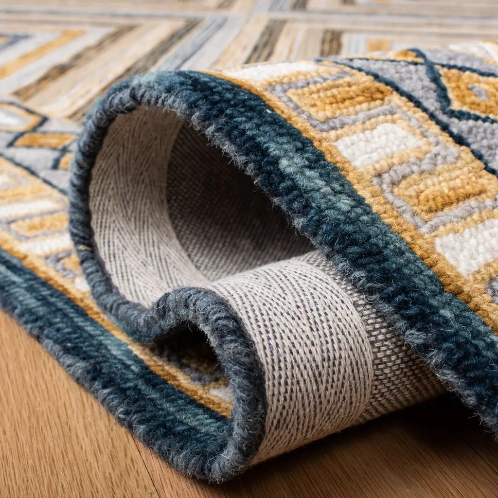 Experience the fusion of tradition and luxury with our exquisite Hand Tufted Wool Area Rug, crafted to perfection in the vibrant lands of India. With a size of 10' X 14', this large rectangle rug is a masterpiece of comfort and design, featuring a plush height of 3/8" that gently cradles your feet. Inspired by Bohemian elegance, this rug boasts a stunning blend of navy and gold hues, resulting in a rich tapestry that adds a regal touch to your living space. The wool construction ensures a durable yet soft feel underfoot, inviting you to linger and savor the comfort of your home. The eye-catching pattern, as showcased in the image, echoes the artistry of ancient cultures, with geometric designs that radiate energy and sophistication. The symmetrical arrangement of diamonds and stripes creates a harmonious balance that is both captivating and soothing. This area rug is not just a decor element but a statement piece that embodies artisanal skills and cultural heritage. Place it in your living room, dining area, or bedroom to transform the space into an oasis of beauty and tranquility. Bring home this treasure of craftsmanship and enjoy a timeless piece that celebrates the blend of classic style with modern allure. Your Hand Tufted Wool Area Rug awaits to become the centerpiece of your decor narrative.