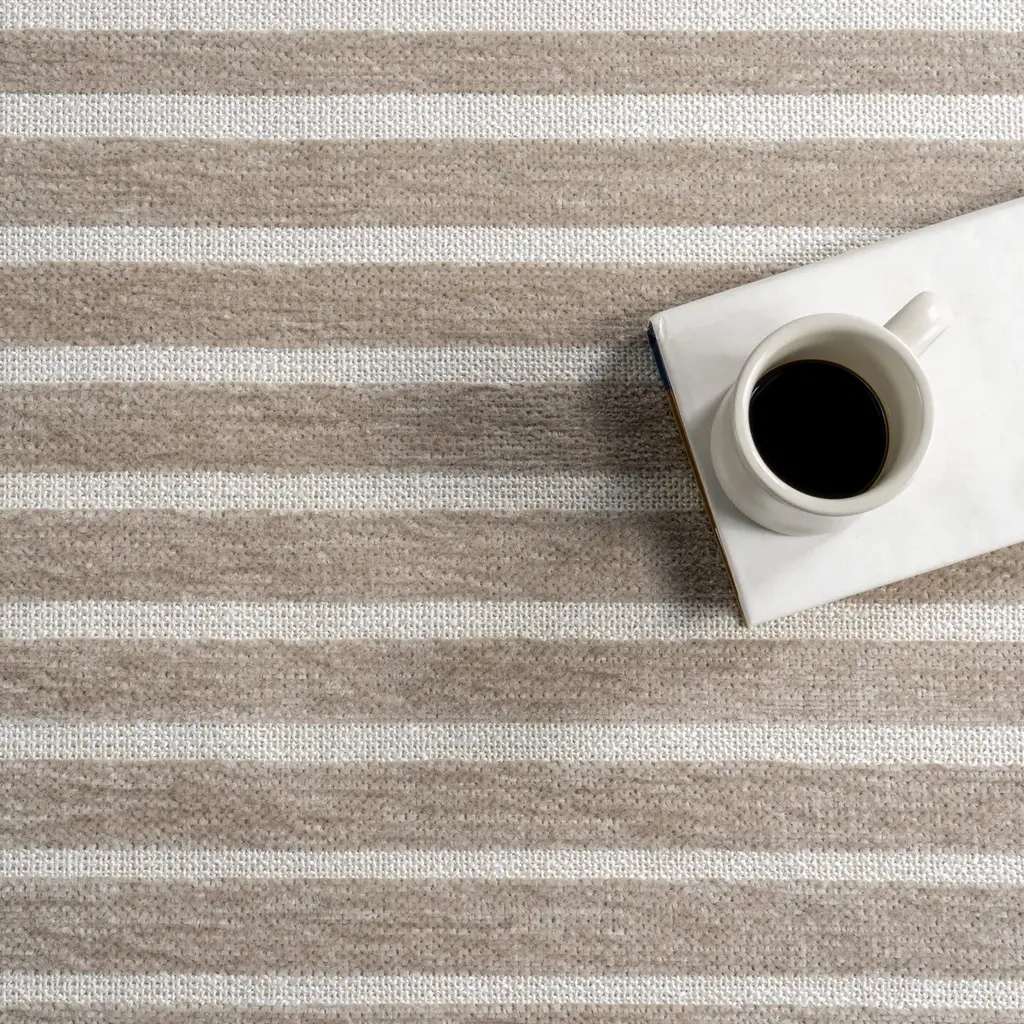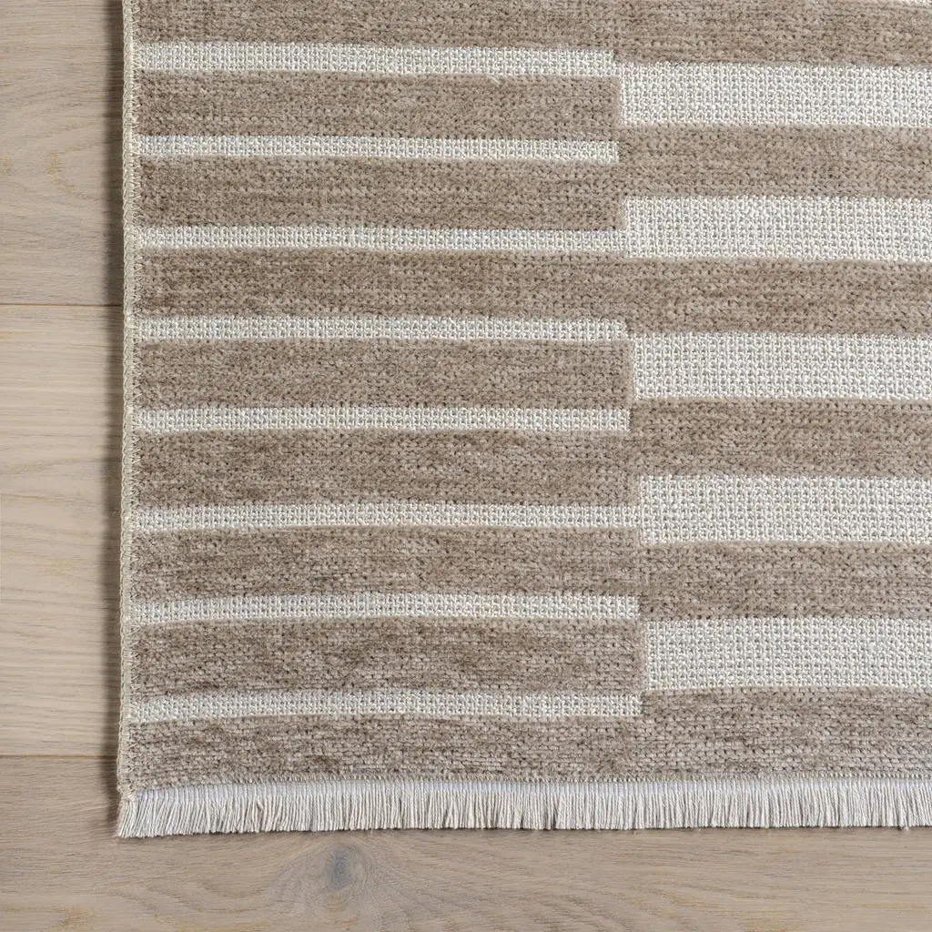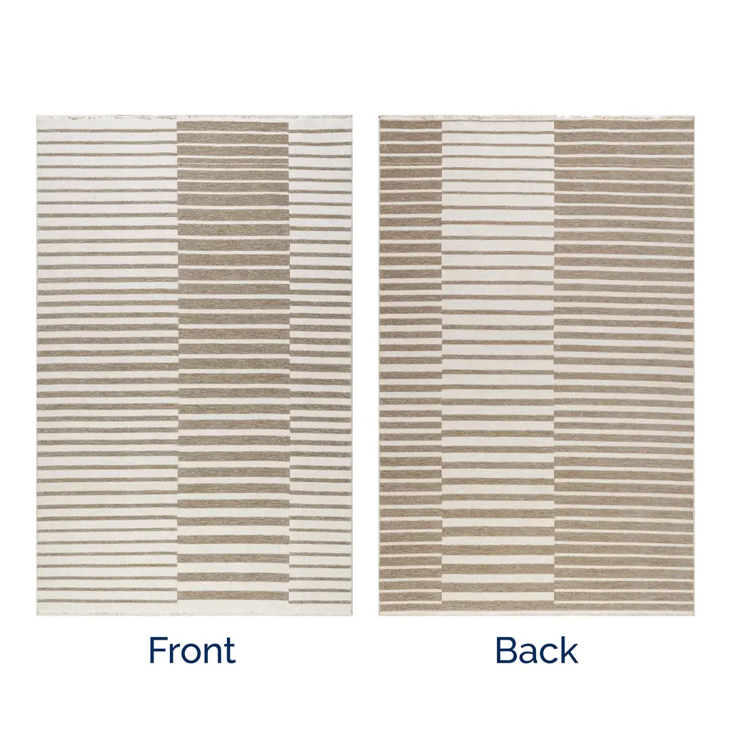 Nova Striped Checkerboard Reversible Washable Rug | Taupe - 7' 10" X 10'