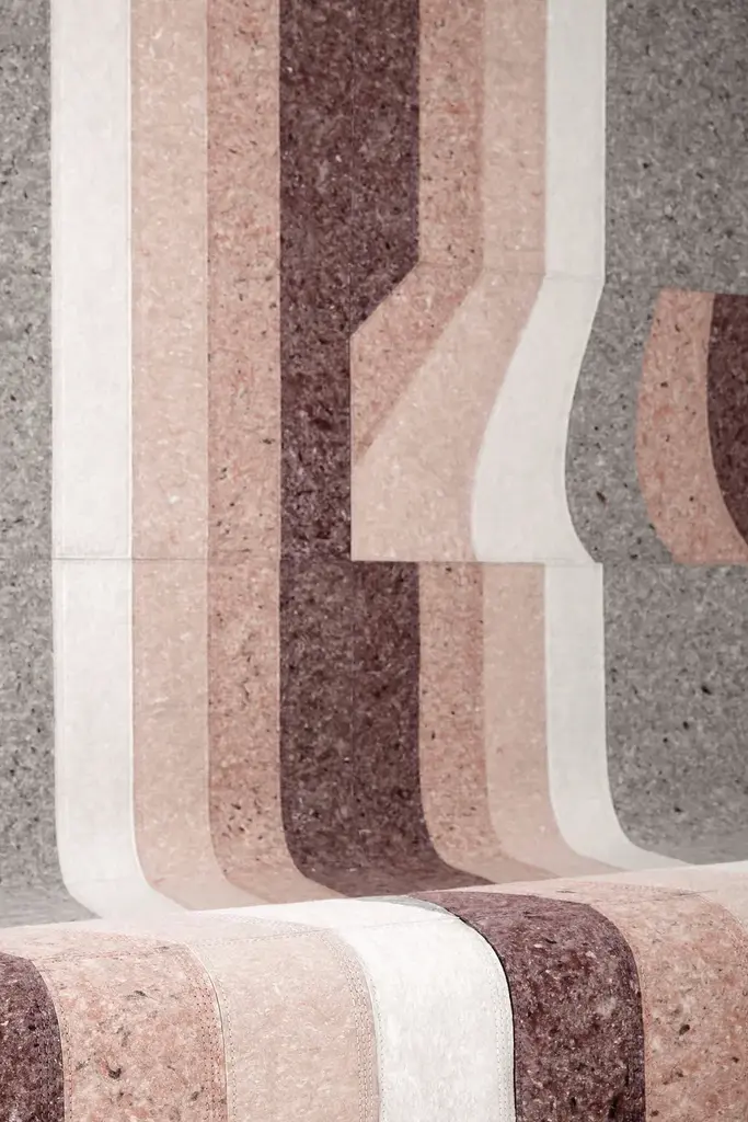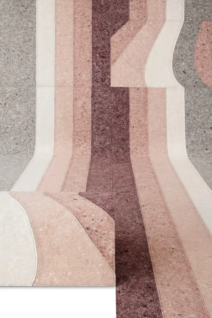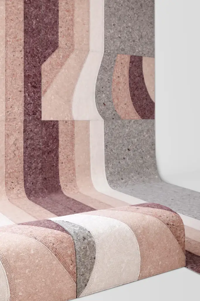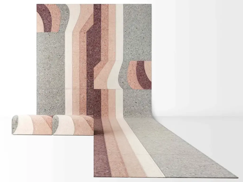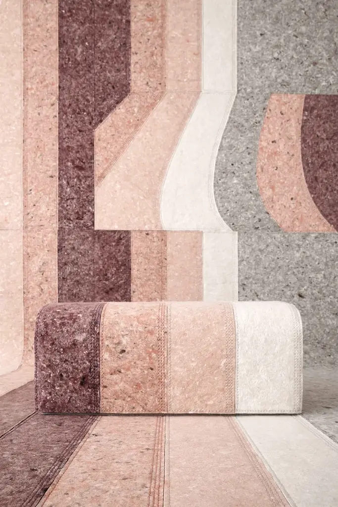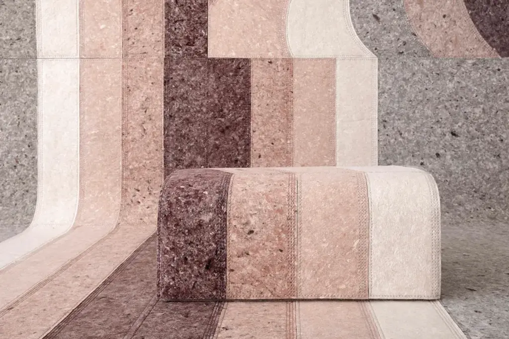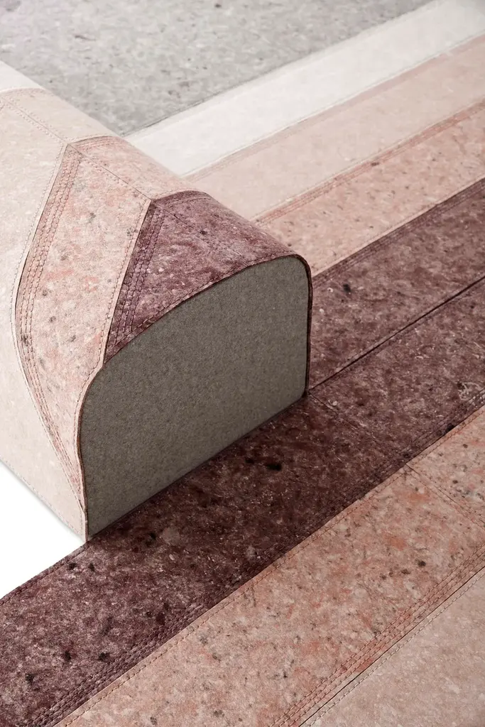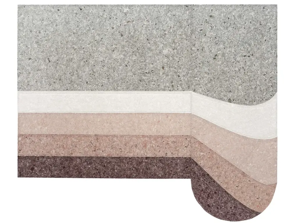 NUANCES. Sustainable felt.Investigating new materials to achieve new textures and effects, developing new techniques to make crafts evolve... that’s what defines GAN. And with NUANCES, the new collection by Patricia Urquiola, the designer captures, with the expertise that characterizes her, the essence of the brand.Felt was the starting point. Patricia Urquiola wanted to work with this natural material, warm and malleable, but also to reinvent it, change the traditional manufacturing parameters and find a technique that would allow her to recycle discarded fibers. So she merged different colors and densities of wool to achieve a stone-like appearance, never seen before, very transgressive.Once the material was adapted, she played with its shapes and tonalities, as only she knows how to. The collection consists of three rugs with different patterns (Curve and Round) and a pouf, which can be combined among themselves, allowing for an infinite set of very architectural geometries.It is declined in three color combinations which, starting from stone gray, take us to three natural color palettes:rose and burgundy (Burgundy), green and blue (Naiad) and earth and lava (Volcano).NUANCES, flows just like its name indicates. Its lines open and close, its colors blur and focus on a visual and tactile game that turns Patricia Urquiola’s new collection for GAN into an intentionally sensorial and artistic experience.Each piece of NUANCES is entirely sewn by hand by skilled artisans, as is always the case with Urquiola designs for GAN.The rugs are 200x300 cm or 6’7”x9’10” (Curve design) and 250x300 cm or 8’3”x9’10” (Round model). The pouf’s dimensions are 100x56x43h cm or 40”x22”x17”h.