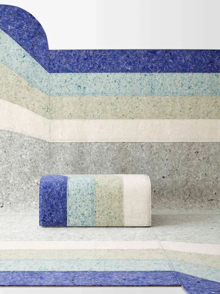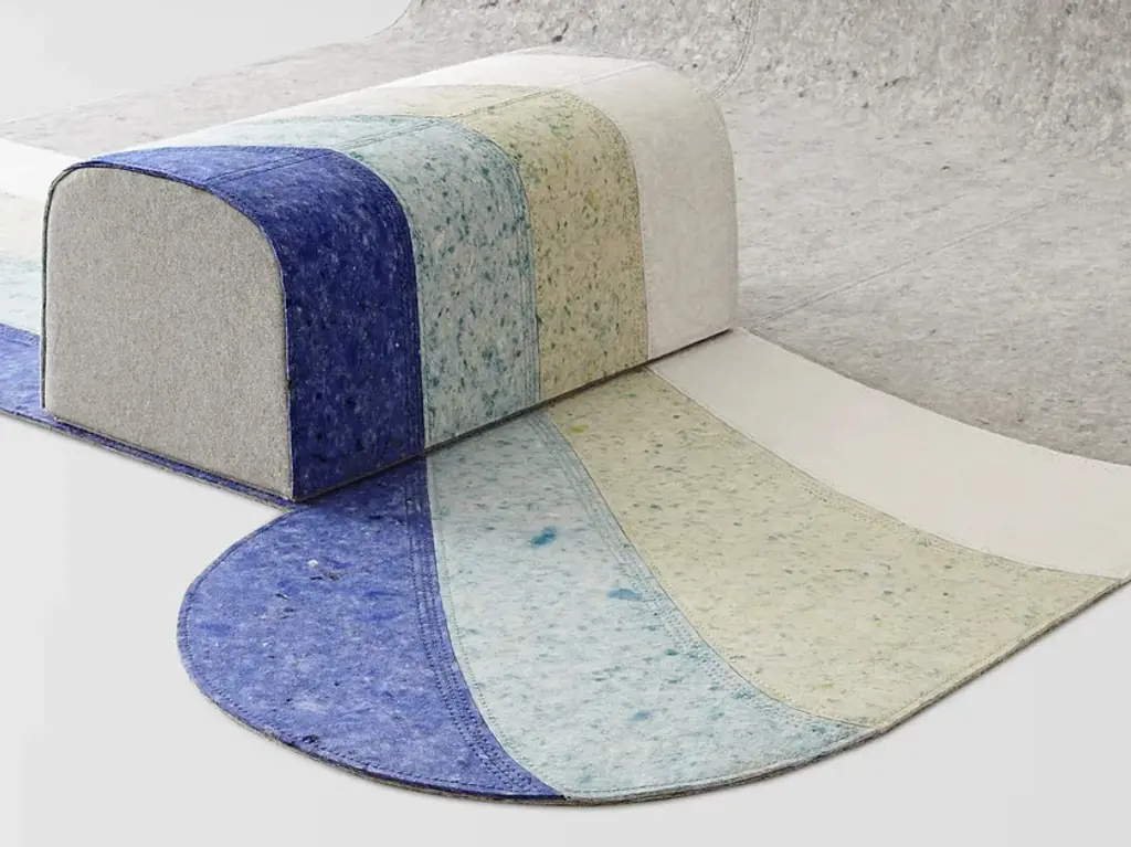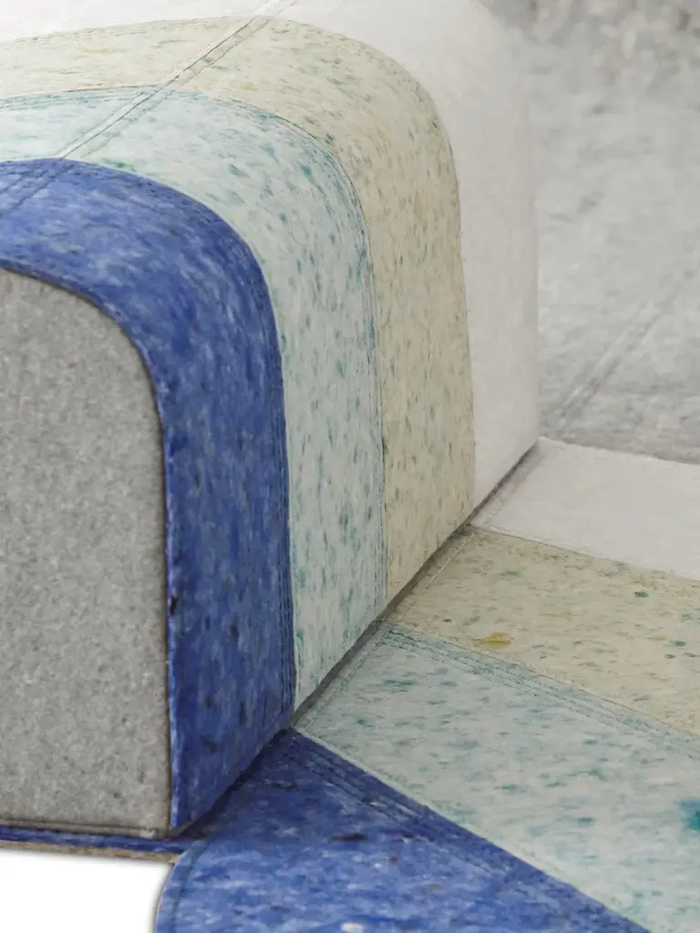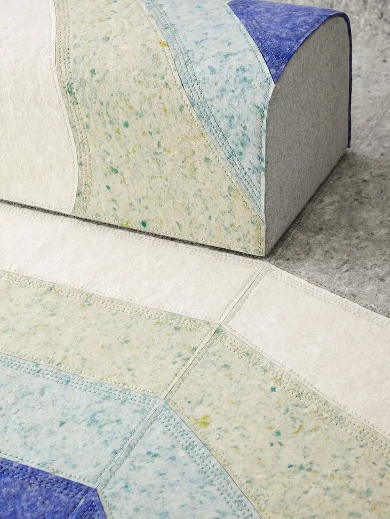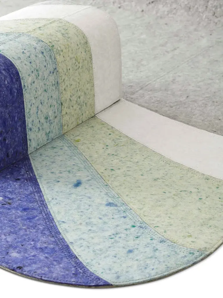 NUANCES. Sustainable felt.Investigating new materials to achieve new textures and effects, developing new techniques to make crafts evolve... that’s what defines GAN. And with NUANCES, the new collection by Patricia Urquiola, the designer captures, with the expertise that characterizes her, the essence of the brand.Felt was the starting point. Patricia Urquiola wanted to work with this natural material, warm and malleable, but also to reinvent it, change the traditional manufacturing parameters and find a technique that would allow her to recycle discarded fibers. So she merged different colors and densities of wool to achieve a stone-like appearance, never seen before, very transgressive.Once the material was adapted, she played with its shapes and tonalities, as only she knows how to. The collection consists of three rugs with different patterns (Curve and Round) and a pouf, which can be combined among themselves, allowing for an infinite set of very architectural geometries.It is declined in three color combinations which, starting from stone gray, take us to three natural color palettes:rose and burgundy (Burgundy), green and blue (Naiad) and earth and lava (Volcano).NUANCES, flows just like its name indicates. Its lines open and close, its colors blur and focus on a visual and tactile game that turns Patricia Urquiola’s new collection for GAN into an intentionally sensorial and artistic experience.Each piece of NUANCES is entirely sewn by hand by skilled artisans, as is always the case with Urquiola designs for GAN.The rugs are 200x300 cm or 6’7”x9’10” (Curve design) and 250x300 cm or 8’3”x9’10” (Round model). The pouf’s dimensions are 100x56x43h cm or 40”x22”x17”h.