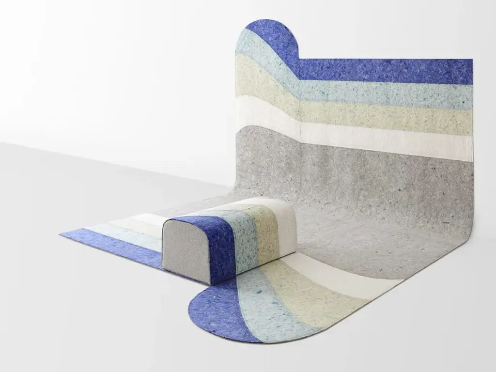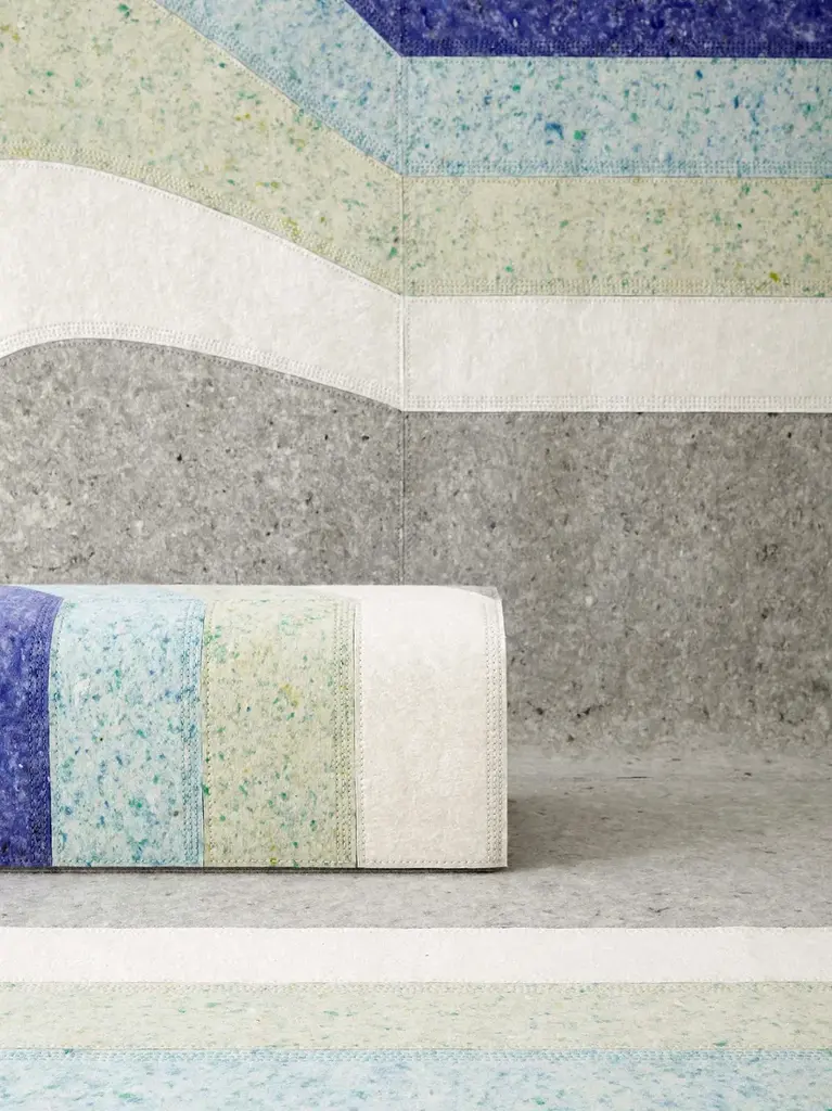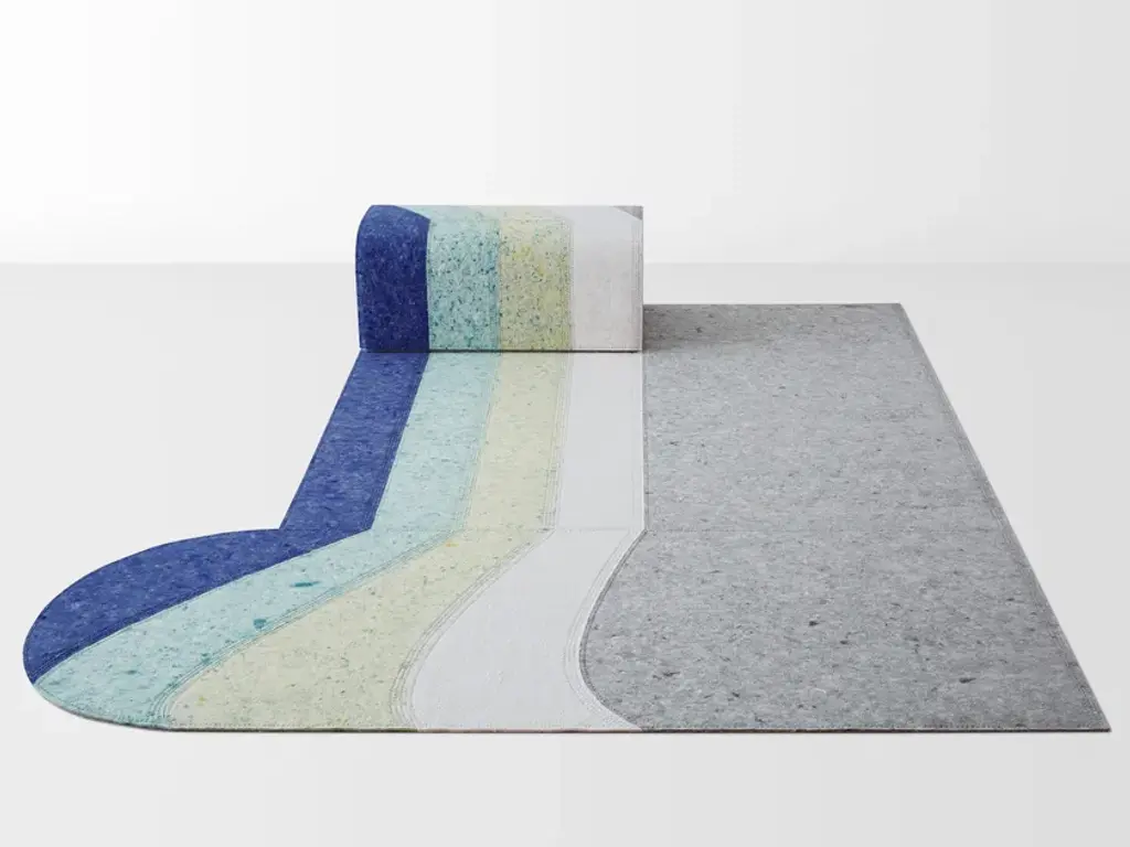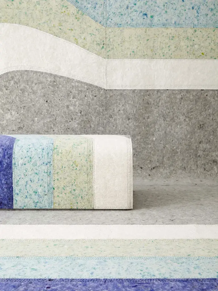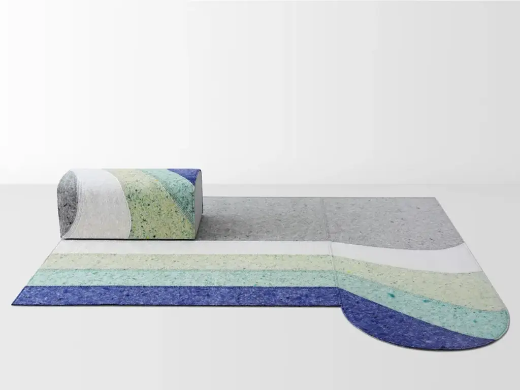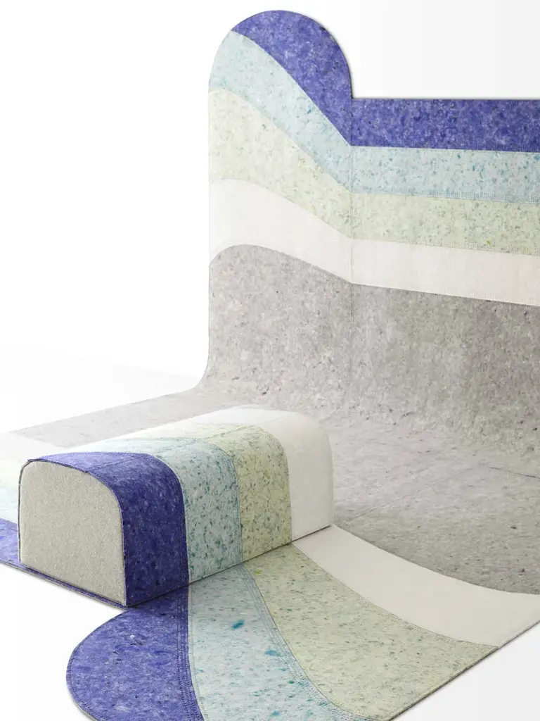 NUANCES. Sustainable felt.Investigating new materials to achieve new textures and effects, developing new techniques to make crafts evolve... that’s what defines GAN. And with NUANCES, the new collection by Patricia Urquiola, the designer captures, with the expertise that characterizes her, the essence of the brand.Felt was the starting point. Patricia Urquiola wanted to work with this natural material, warm and malleable, but also to reinvent it, change the traditional manufacturing parameters and find a technique that would allow her to recycle discarded fibers. So she merged different colors and densities of wool to achieve a stone-like appearance, never seen before, very transgressive.Once the material was adapted, she played with its shapes and tonalities, as only she knows how to. The collection consists of three rugs with different patterns (Curve and Round) and a pouf, which can be combined among themselves, allowing for an infinite set of very architectural geometries.It is declined in three color combinations which, starting from stone gray, take us to three natural color palettes:rose and burgundy (Burgundy), green and blue (Naiad) and earth and lava (Volcano).NUANCES, flows just like its name indicates. Its lines open and close, its colors blur and focus on a visual and tactile game that turns Patricia Urquiola’s new collection for GAN into an intentionally sensorial and artistic experience.Each piece of NUANCES is entirely sewn by hand by skilled artisans, as is always the case with Urquiola designs for GAN.The rugs are 200x300 cm or 6’7”x9’10” (Curve design) and 250x300 cm or 8’3”x9’10” (Round model). The pouf’s dimensions are 100x56x43h cm or 40”x22”x17”h.