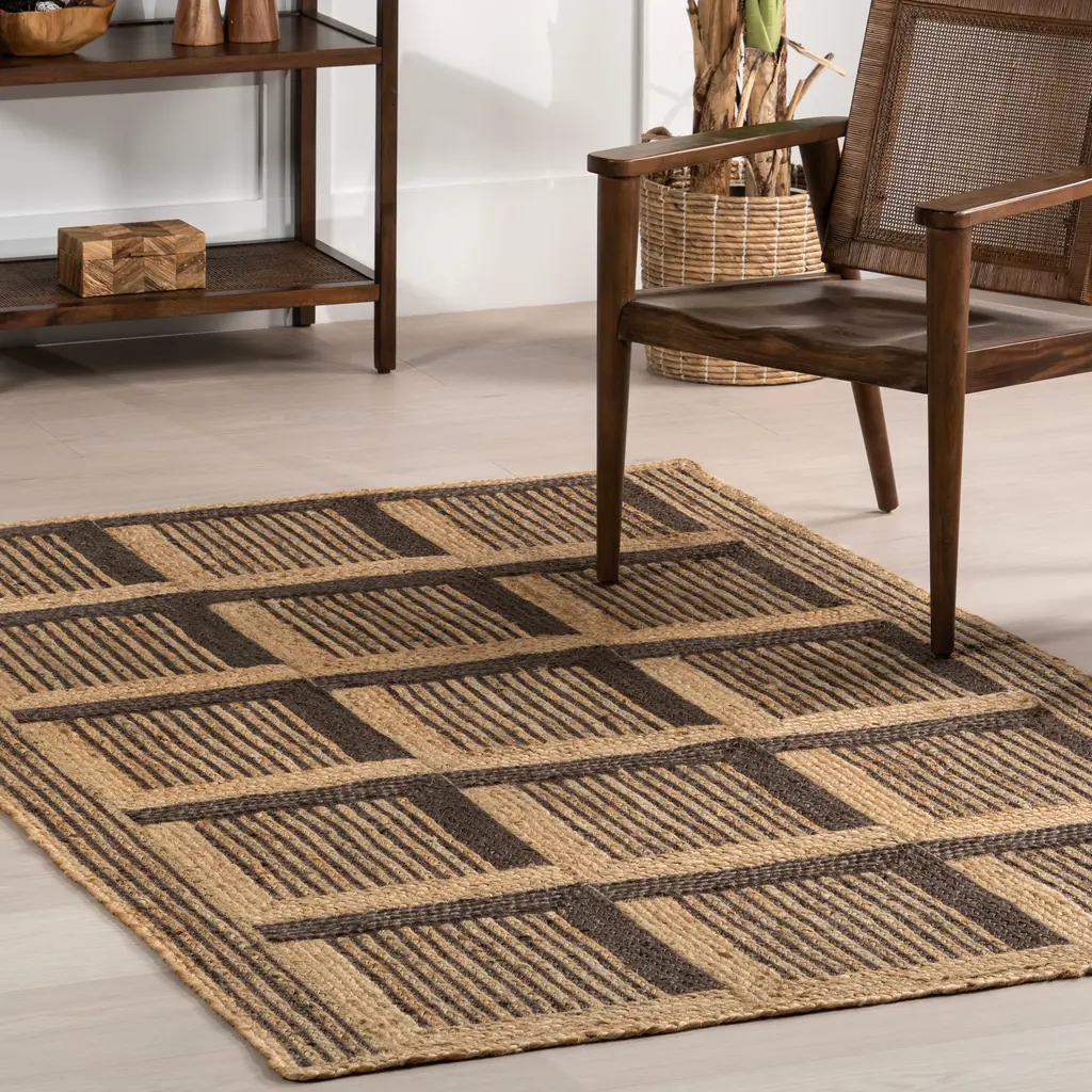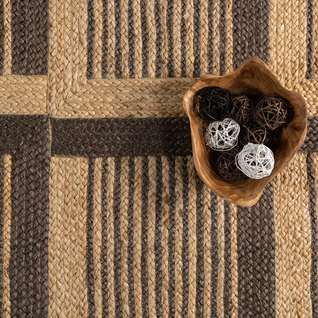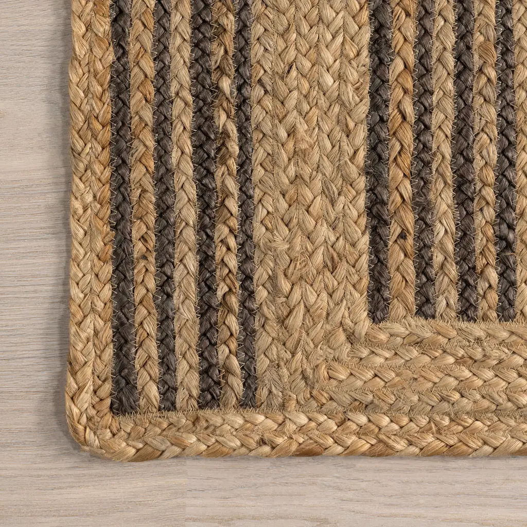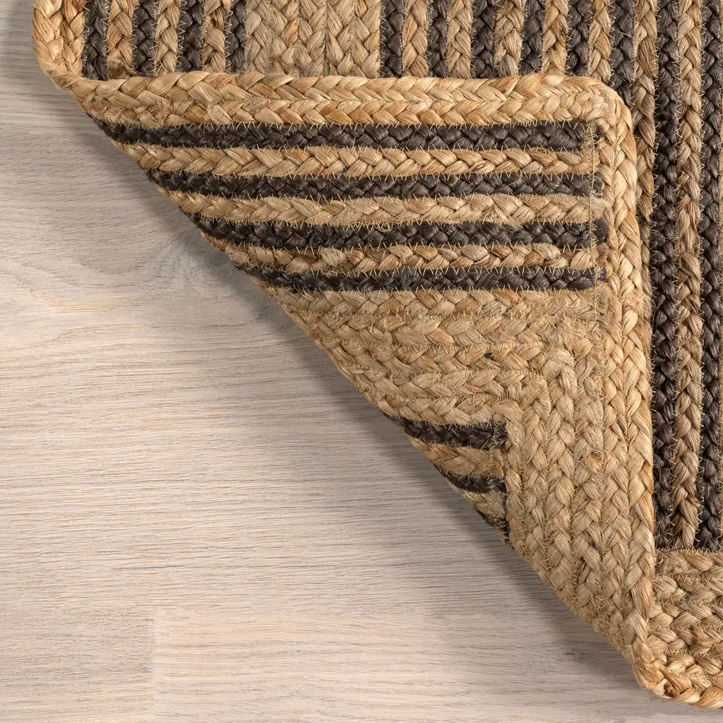 Create the oasis you've always dreamed of with this jute area rug. Hand braided, combining a geometric pattern and natural texture by using bleached and natural jute yarns make this floor covering the finishing touch to any space. Pair this rug with any of your existing decor from modern to bohemian. Get that stylish look with the great feeling of sustainability with this gorgeous area rug.Features:100% Jute, made in IndiaThis durable yet stylish natural fiber rug is perfect for your bedroom, living room, dining room, kitchen, or hallwayThis handmade flatweave rug has a .30" thickness allows for convenient placement in entryways and underneath furnitureSprouting and debris are common due to being made from plant fibers, trim any loose threads with scissors and regularly clean under your rugVacuum your jute rug 1-2 times a week on the lowest power level or with handheld attachment and spot clean as needed with mild detergent