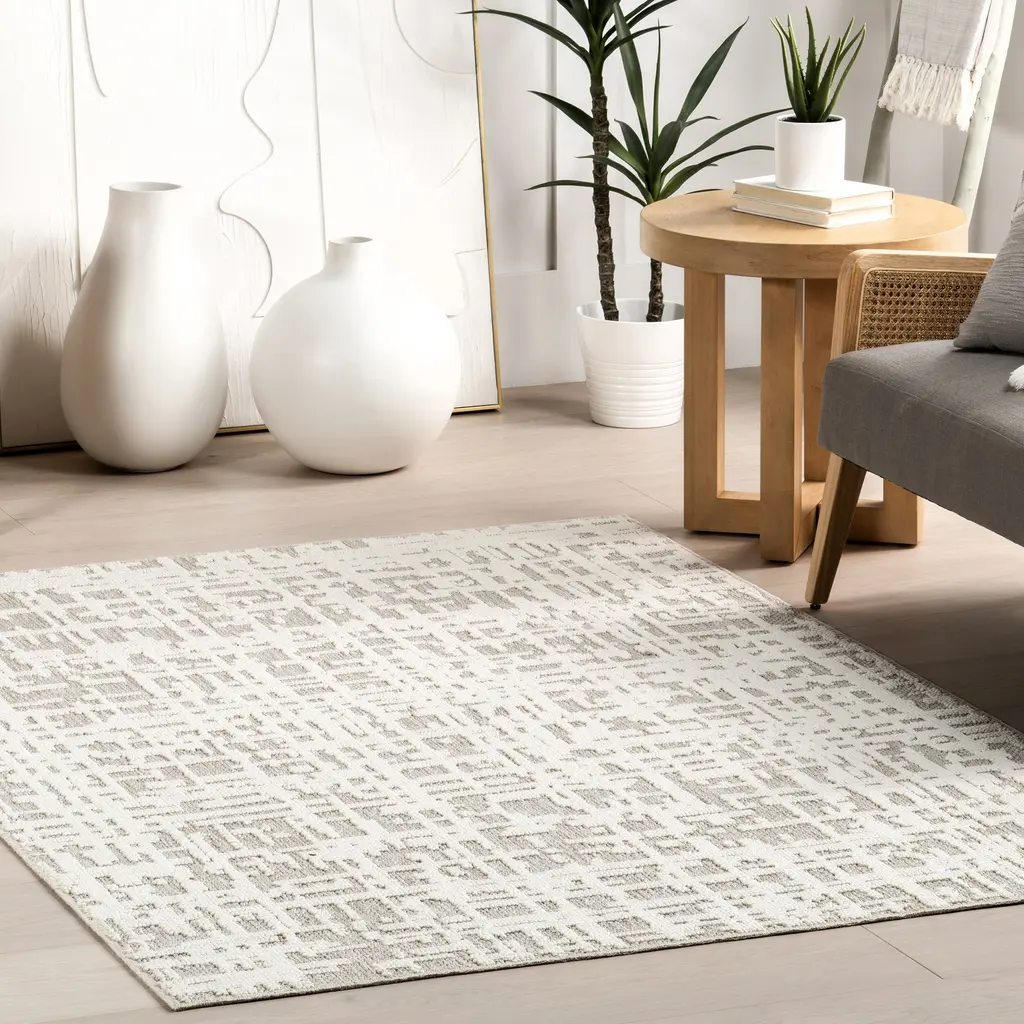 Nuloom Amity Abstract Machine Washable Area Rug - 2' 6" X 6' - Light Grey - Rectangle