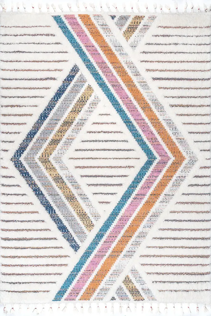 Both children and adults alike are bound to fall in love with this beautiful cozy textured area rug. Not lacking a single detail this rug features a fun creative pattern, bright pops of color, and braided tassels. It will make the perfect addition to a playroom, nursery, or bedroom. Prized for their durability and ease of care, synthetic rugs are the perfect choice when spills and constant foot traffic are at the top of your mind.