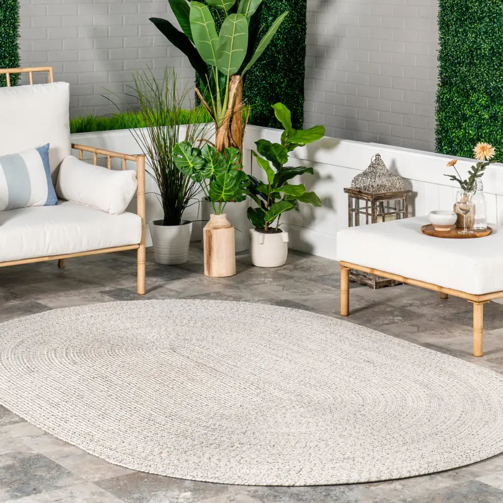 Whether you are looking to elevate your patio or your living room, this casual braided indoor/outdoor rug will be the final piece your space has been missing. Made from durable synthetic fibers, this rug is built to last and adds a touch of luxury wherever it is placed while seamlessly pairing with any decor from coastal to modern. Create your own oasis with our pet-friendly and easy to care for area rugs.100% Polypropylene, made in IndiaDesigned with resilience against everyday wear and tear, this rug is kid and pet-friendly and perfect for high traffic areas both indoors and outdoors: patio, living room, kitchen, and hallwaysSleek and functional with a .3" thickness that is convenient for placement in entryways, underneath furniture, and will not obstruct doorwaysEasy to clean, this rug can be hosed down outside and spot treated for any mild stains using rug cleanerWe recommend using a rug pad to provide extra cushioning and to prevent any possible slipping and sliding on your flooring. Rug pads serve as protective layering piece for your floor and your rug from any wear and tear, extending the life of your rug.