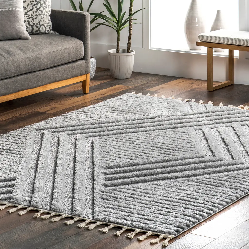 Nuloom Briella High-Low Geometric Shag Area Rug - 10' X 14' - Light Grey