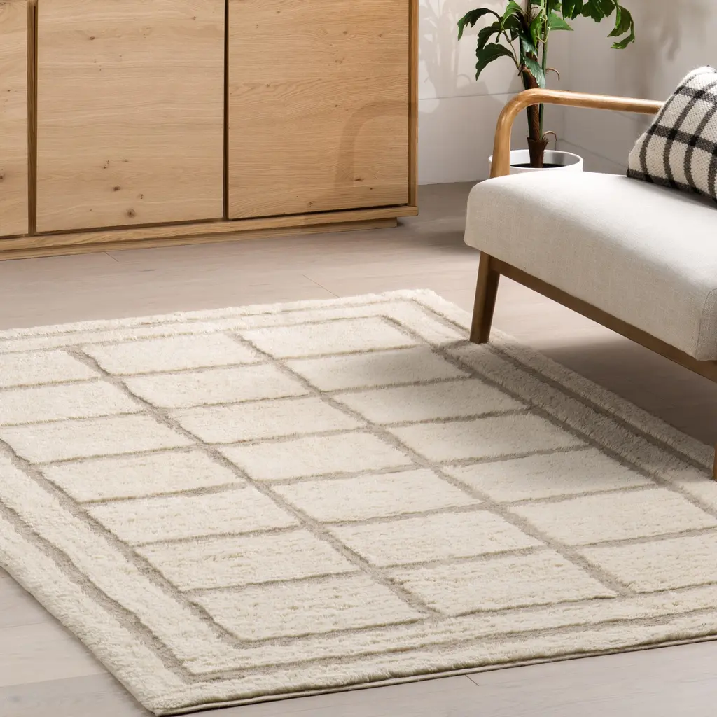 Nuloom Brynne Geometric Blocks Wool Machine Washable Area Rug - 4' X 6' - Ivory - Rectangle