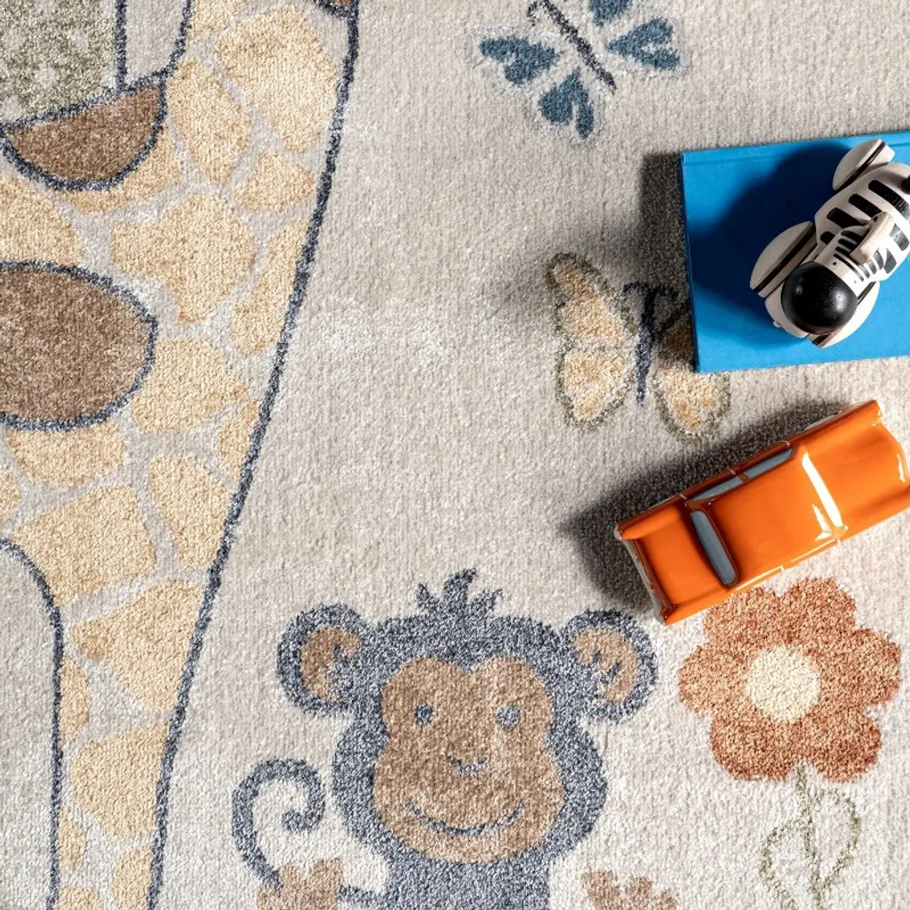 Nuloom Cass Safari Kids Pet Friendly Machine Washable Area Rug, 3' X 5', Light Beige