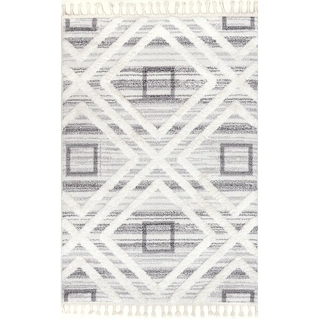 Nuloom Dae Geometric High/low Tasseled Area Rug - 4' X 6' - Grey - Rectangle