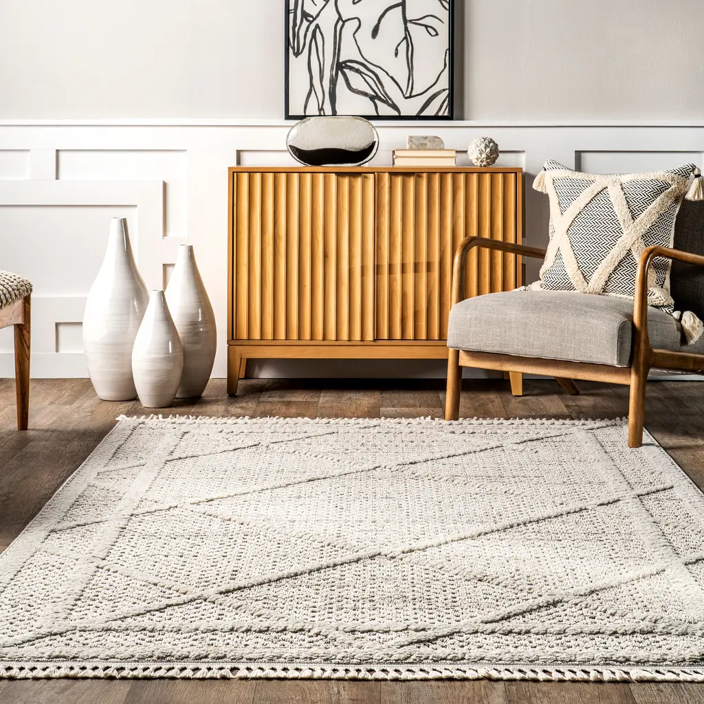 Nuloom Dazi Moroccan Diamond High/low Tasseled Area Rug - 7' 10" X 10' 10" - Beige - Rectangle