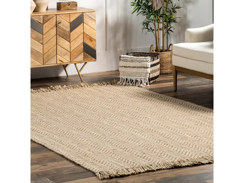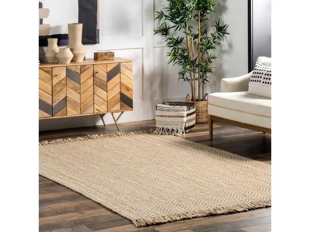 Create your own oasis with this chevron jute area rug. The handmade design features an undulating pattern with tasseled ends for a bohemian touch. Made from 100% jute, handmade rugs carry the spirit of the artisans that made them. Each piece is marked by subtle but individual differences that make your rug unique. Kick back and relax with our easy to care for pet-friendly area rugs.
