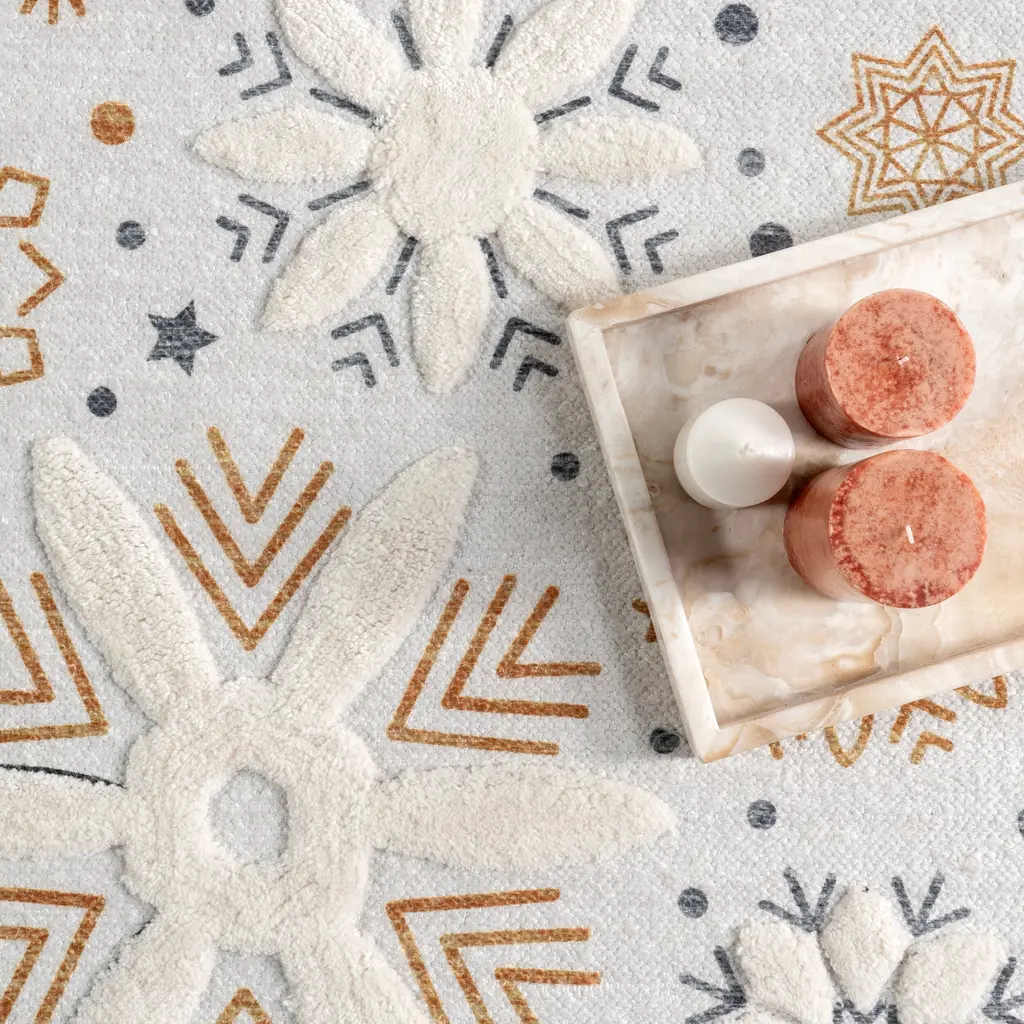 Discover unparalleled softness and lasting quality with our expertly crafted wool rugs. Each piece features intricate high-low textures achieved through skilled overtufting, resulting in a stunning blend of comfort and resilience. Our collection boasts enchanting, winter-inspired patterns that will elevate your decor. Immerse yourself in the multidimensional beauty of these designs, designed to thrive in high-traffic areas. Don't wait - seize the opportunity to enhance your space with this extraordinary fusion of artistry and durability!Features:75% Polyester, 25% Wool, made in IndiaAdd warmth to your living room, bedroom, dining room, kitchen, or entryway with just the right amount of style, durability, and comfort with this area rugHandmade with love and care, this wool blend rug has a sleek and functional .25" thickness that allows for convenient placement in entryways and underneath furnitureClean spills immediately by blotting with a clean sponge or cloth, vacuum without beater bar at lowest settingWe recommend using a rug pad to provide extra cushioning and to prevent any possible slipping and sliding on your flooring. Rug pads serve as protective layering piece for your floor and your rug from any wear and tear, extending the life of your rug.