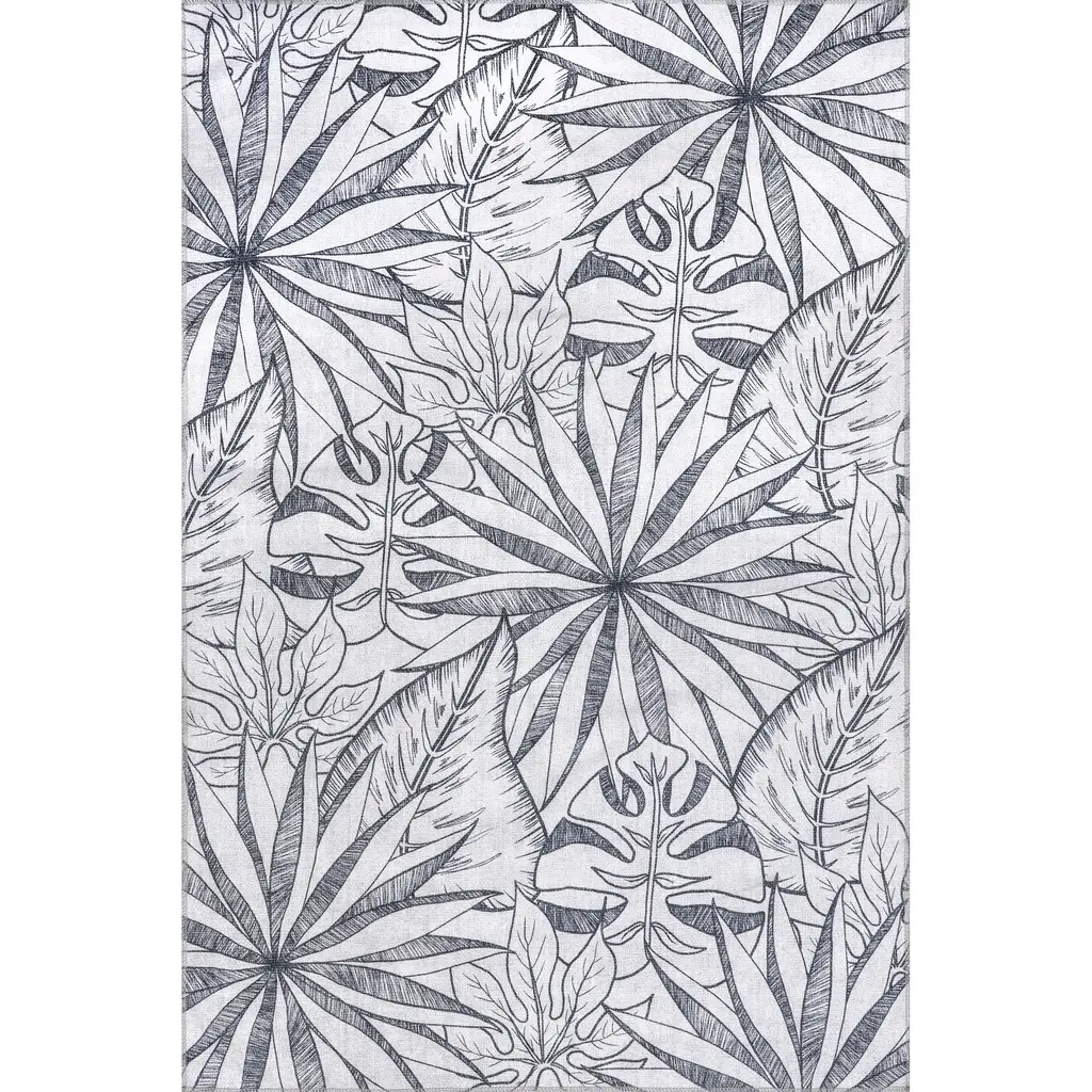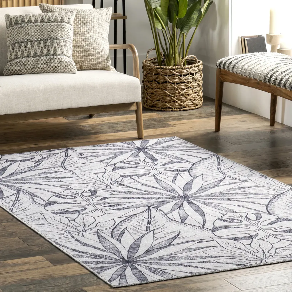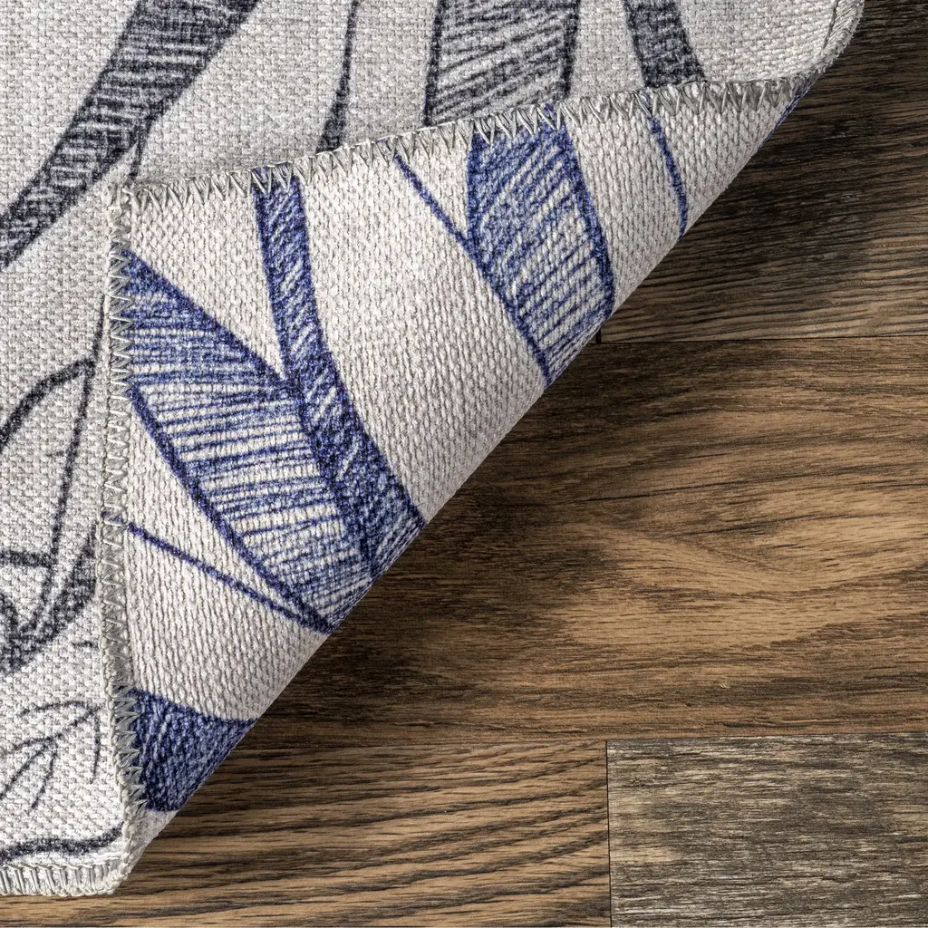 Nuloom Emilia Tropical Washable Reverisble Area Rug, Navy And Grey 4'x6'