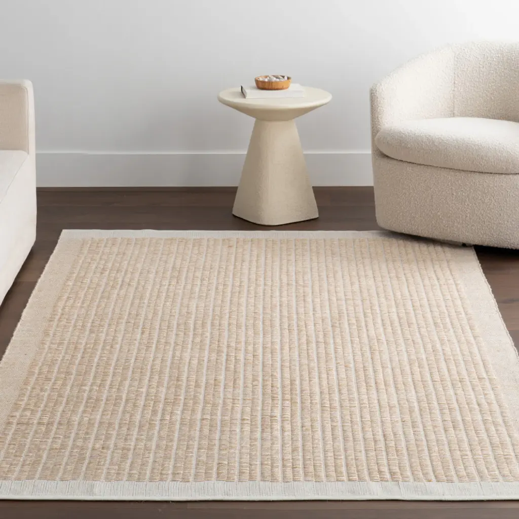 Introducing our striped area rug, crafted to seamlessly blend style with functionality. Whether indoors or outdoor its highly durable construction withstands heavy foot traffic. Kid-friendly and pet-friendly, this rug boasts stain resistance, making it perfect for any space, from the bedroom to the patio. Handmade with 100% recycled polyester, it offers both comfort and longevity, ideal for regular outdoor use. Elevate your living space with this versatile and chic addition, designed to enhance any room with its sleek design and enduring quality.100% Recycled Polyester, made in IndiaThis exquisite rug would make an excellent addition to your bedroom, living room, dining room, or outdoor patio area. With its intricate design and vibrant colors, it brings warmth and character to the space, fostering a cozy atmosphere perfect for relaxation and gatherings.This low-profile area rug, with a pile height of 0.20 inches, merges softness and gentleness in its texture, guaranteeing comfort and durability in any living space.Clean spills immediately by blotting with a clean sponge or cloth. Vacuum without beater bar at lowest setting. Professional cleaning recommended.We recommend using a rug pad to provide extra cushioning and to prevent any possible slipping and sliding on your flooring. Rug pads serve as protective layering piece for your floor and your rug from any wear and tear, extending the life of your rug