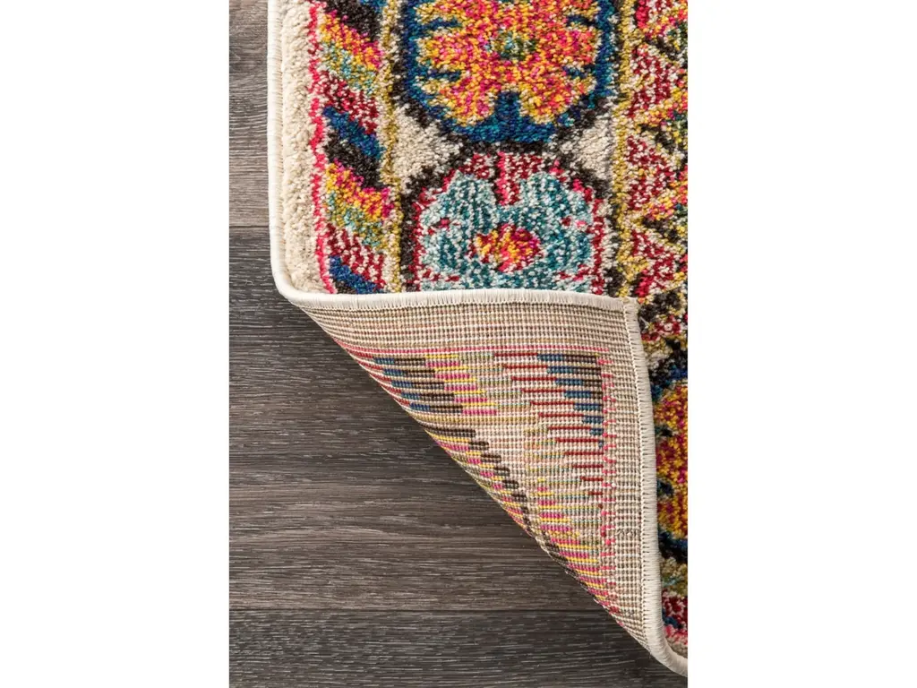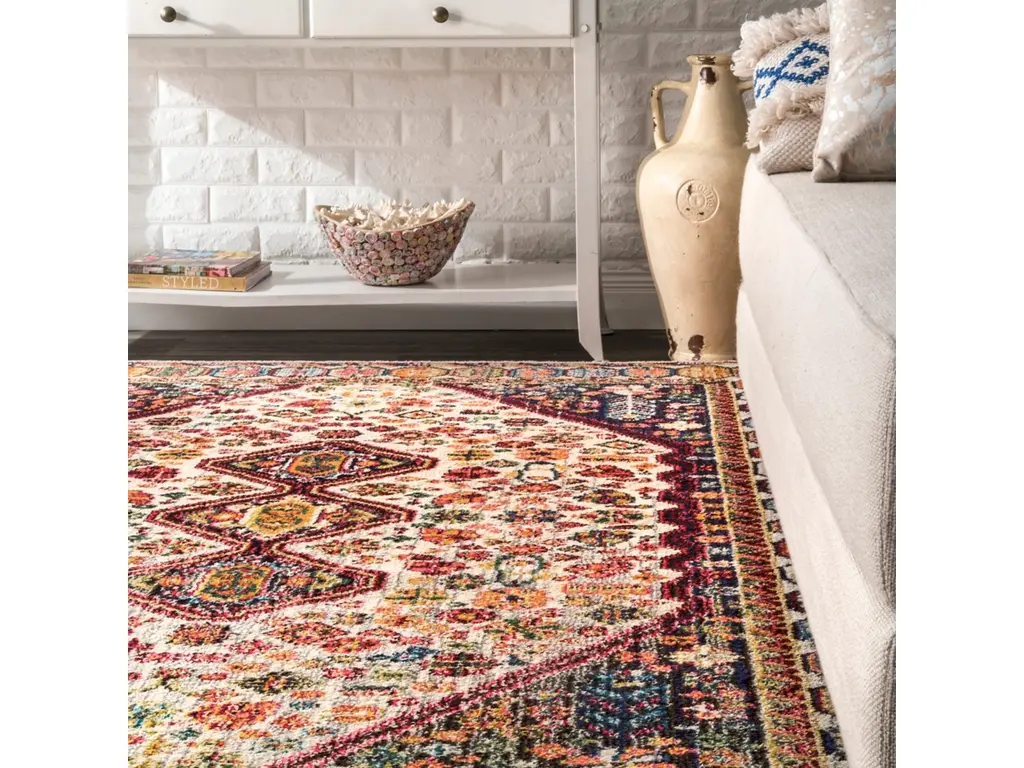 Make a bold statement with this gorgeous colorful bohemian area rug. With a mix of traditional style and vibrant colors, this floor covering will pair perfectly with modern or bohemian décor. Machine made from soft synthetic materials this rug is durable and built to last in high traffic areas of your home. Never settle for anything less than perfection with our easy to care for and pet-friendly rugs.