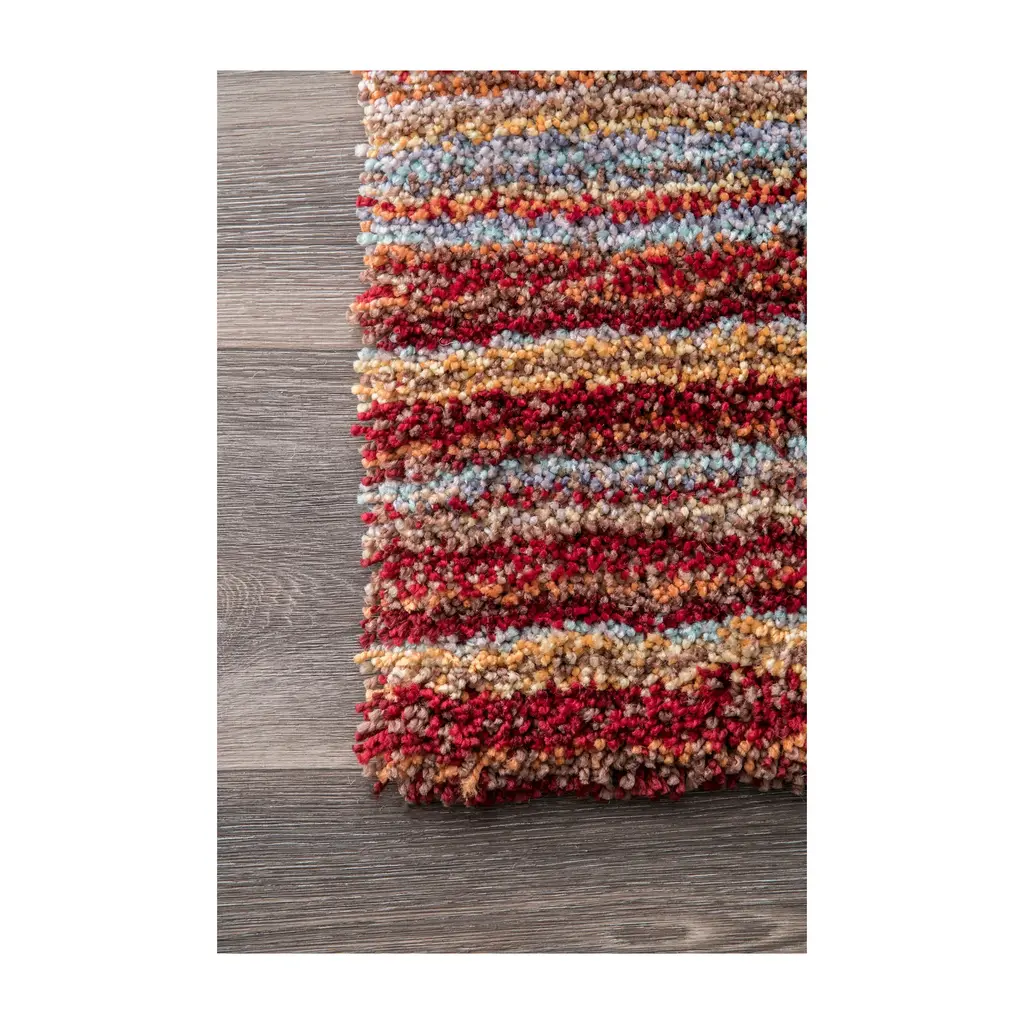 Nuloom Hand-Tufted Striped Shaggy Plush Shag Rug, Red Multicolor 9'x12'
