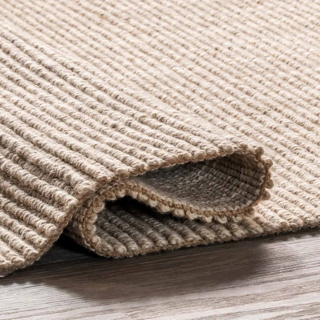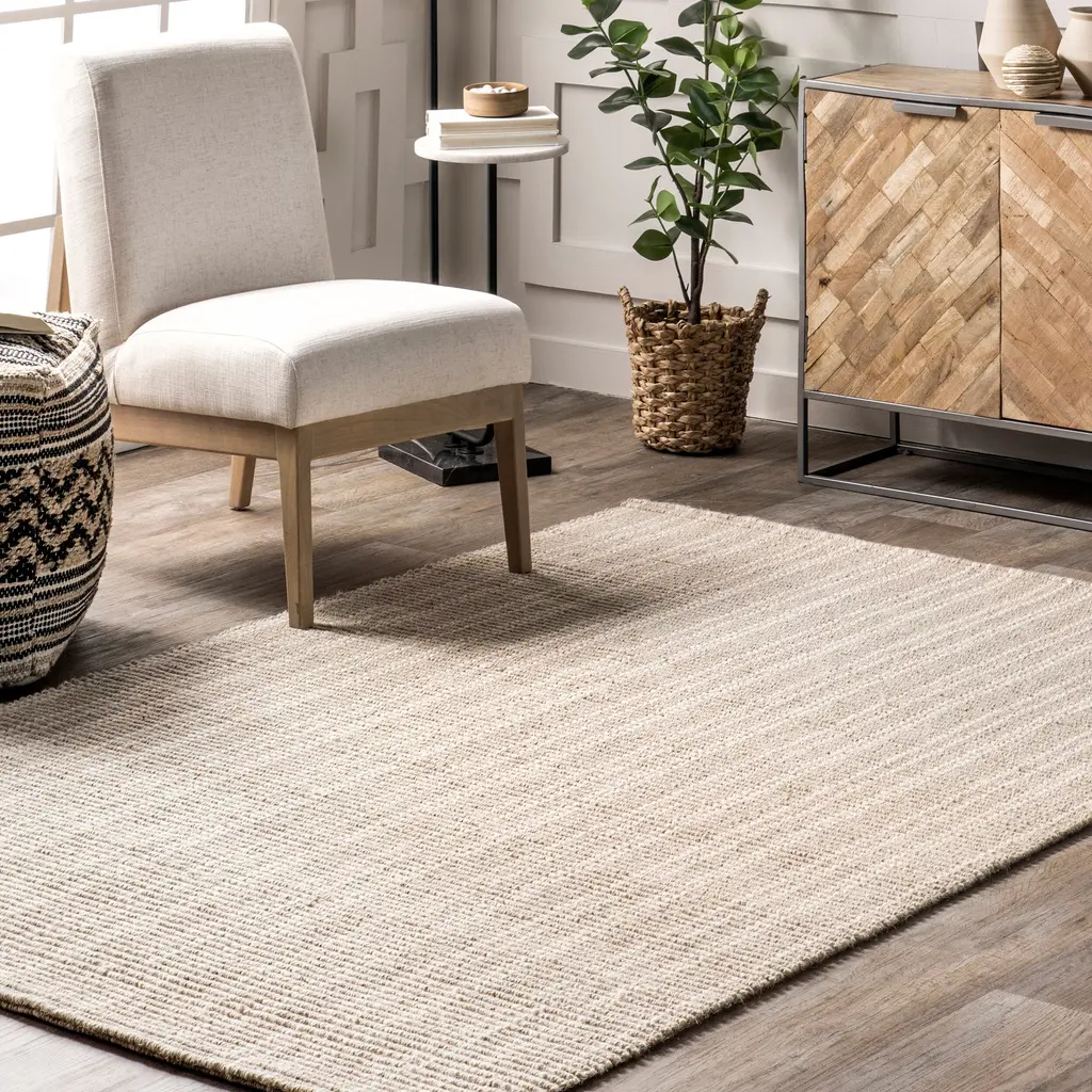 Cuddle up to this inviting rug without compromising on style! The stunning color palette will tie together the myriad elements in your space for a cohesive flow that never goes out of style. You'll love how this versatile area rug goes from chic to cozy in seconds-perfect for any room in your home. Let it bring a sense of peace and coziness to your living space. This rug won't wear out or wear down, so your investment is safe. Have a pet? This rug will keep things as fresh as the day you bought it, so don't worry about accidents. Kick up those feet with our pet-friendly and easy to clean area rugs.Features:70% Wool, 30% Jute, made in IndiaAdd warmth to your living room, bedroom, dining room, kitchen, or entryway with just the right amount of style, durability, and comfort with this wool and jute blend rugHand loomed with a medium .4" thicknessClean spills immediately by blotting with a clean sponge or cloth. Vacuum without beater bar at lowest setting. Professional cleaning recommended.We recommend using a rug pad to provide extra cushioning and to prevent any possible slipping and sliding on your flooring. Rug pads serve as protective layering piece for your floor and your rug from any wear and tear, extending the life of your rug.