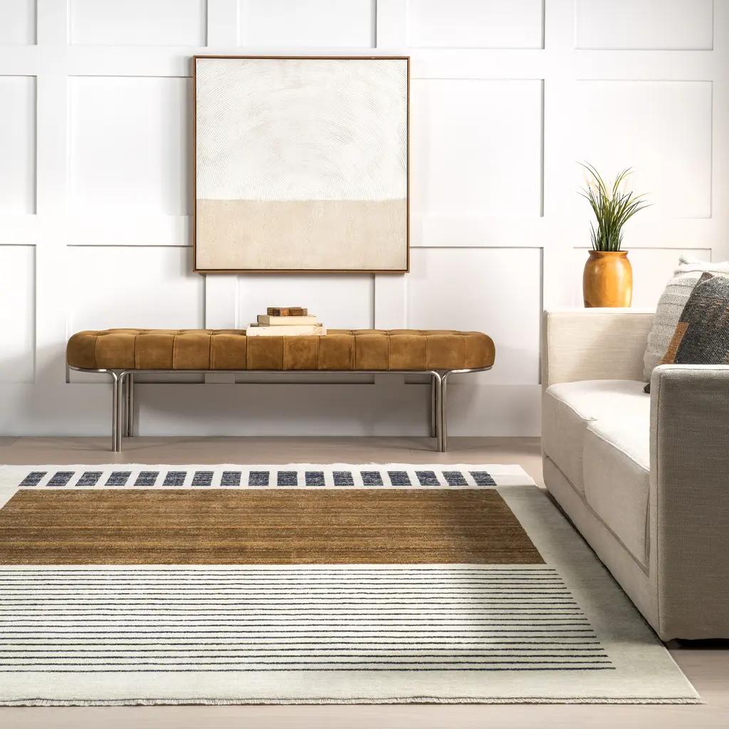 Nuloom Keeva Modern Striped Fringe Area Rug - 6'4" Round - Beige